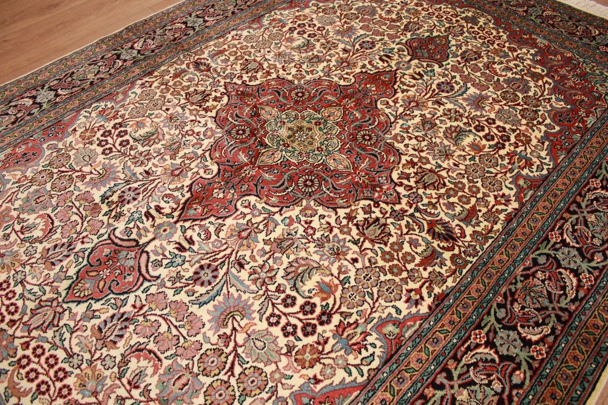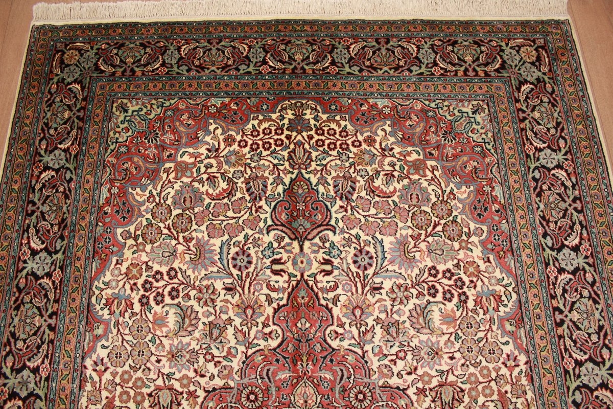 Kashmir carpets are hand knotted in India in the Kashmir area. They consist of silk and have a knot density of 360,000 to 810,000 knots / square meter. A cashmere carpet has very harmonious and calm colors and therefore fits in many facilities.