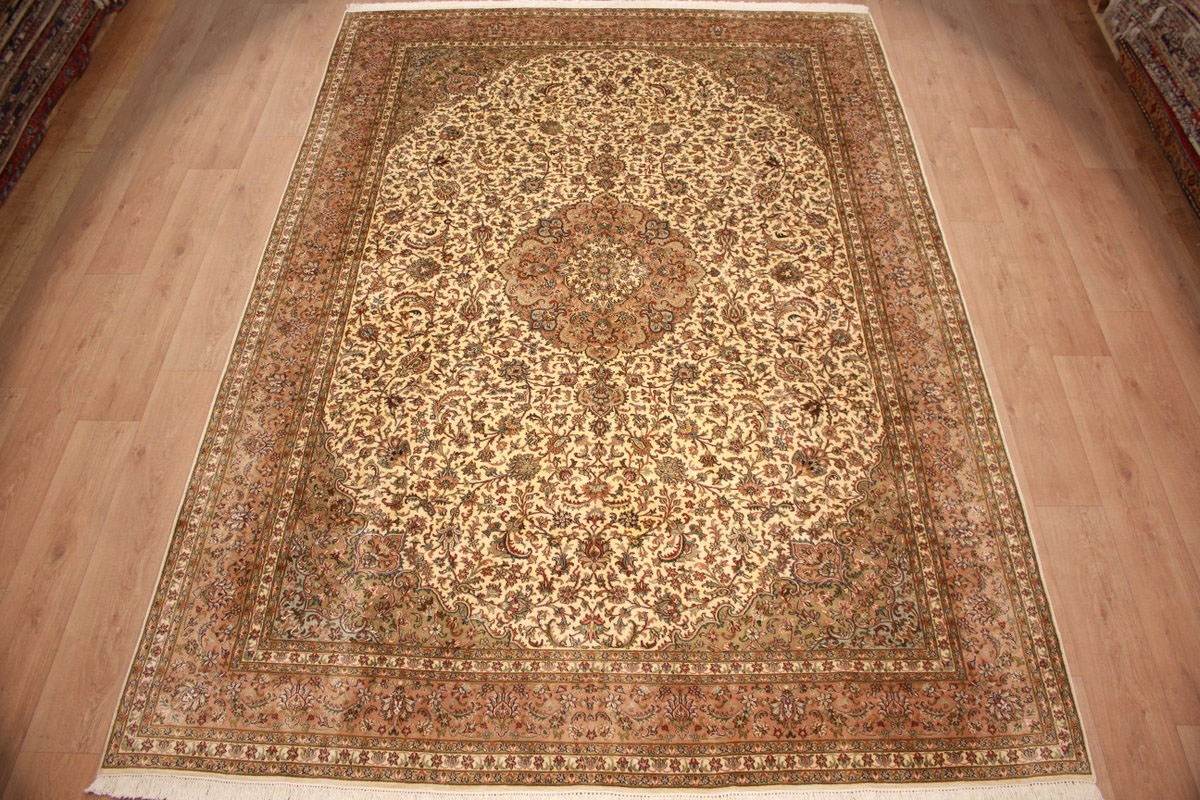 Oriental carpet Kashmir natural silk 338x236 cm Beige
