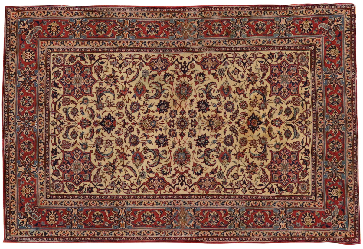Among the finest handmade carpets ever made, Isfahan rugs are the pinnacle of the Persian carpet. In an enchanted city, renowned for its taste and finesse, these carpets are of great delicacy and utmost intricacy. The city of Isfahan holds pride of place in the Persian rug industry because of its rich history and reputation dating back to the 16th century. Most Isfahan carpets are finely detailed in wool and silk, often on a base of pure silk. Until the middle of the 20th century colors were mostly stronger, like bold reds and blues on the ubiquitous beige. But later comes the visible influence of the international Designer, with more subdued ranges of subtler colors. Still, at the sight of curvilinear vines snaking over an elegant field around an exquisite medallion, especially if the long fringes glisten silkily from magnificent borders, the word 'Isfahan' tends to spring to one's lips. Patterns include pictorial and tree-of-life schemes, as well as the Shah Abbas field with its floral vines.