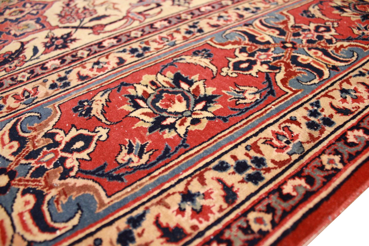 Besides the legendary cities of central Persia, such as Tehran, Isfahan, Kashan, Yazd, and Kerman, there are many smaller towns scattered throughout this area that also weave carpets of very high quality. Some of these small towns near Tehran are Veramin, Tafresh, Boroujerd, Khomaine and Taleghan, and, near Isfahan, are Najafabad, Josheghan, and the village of Maymeh. There are also a few near Kashan that produce fine rugs, such as Yazd and Ardekan. Kashan and Isfahan, being among the pioneers from the 16th century, have had enormous influence on their surroundings. Najafabad produces the designs of Isfahan, and Yazd and Ardekan the famous designs of Kashan, almost indistinguishably. An expert weaver in one of these cities will work non-stop on a carpet for many years. The famous asymmetrical Persian knot is generally the one used. The materials can be all wool, all silk or a mixture of the two. The foundation is usually cotton, except in very fine pieces, where it can be pure silk. Although rugs produced in the major cities of this region are technically superior to the ones produced on the outskirts, these pieces from the smaller towns of central Persia are still among the best. Many carpets from this area have been known to last several hundreds of years.