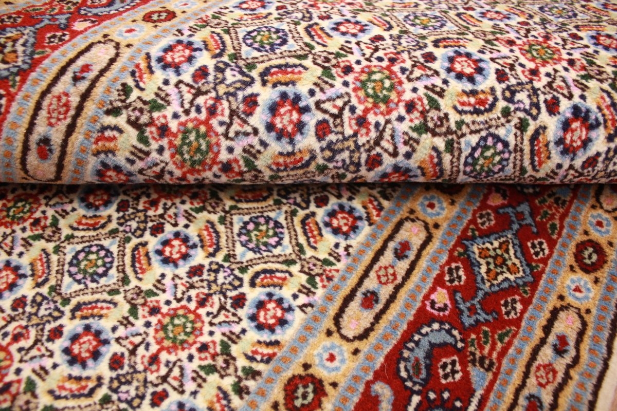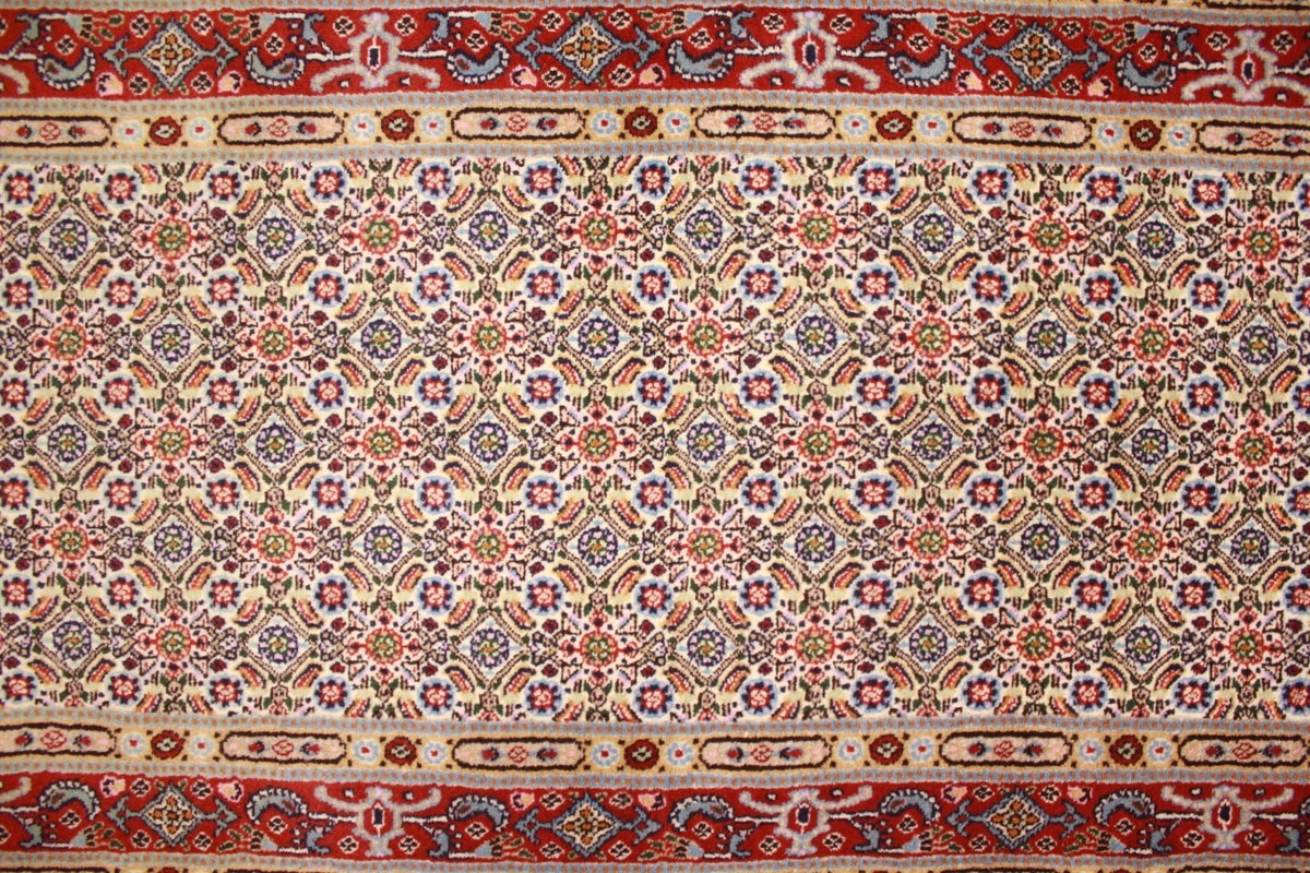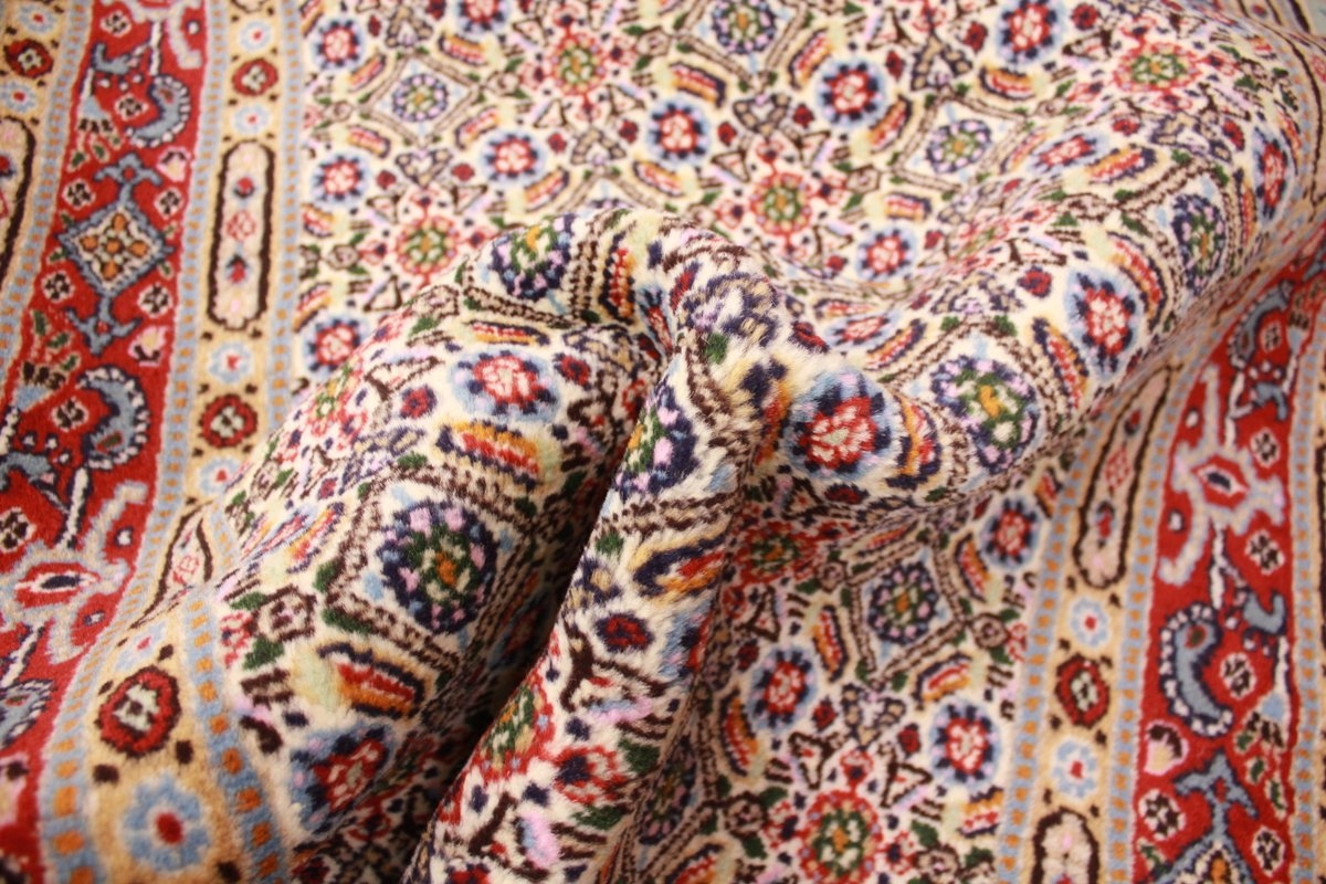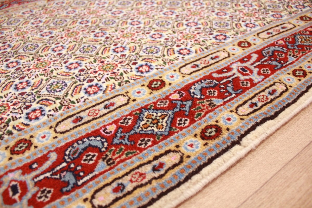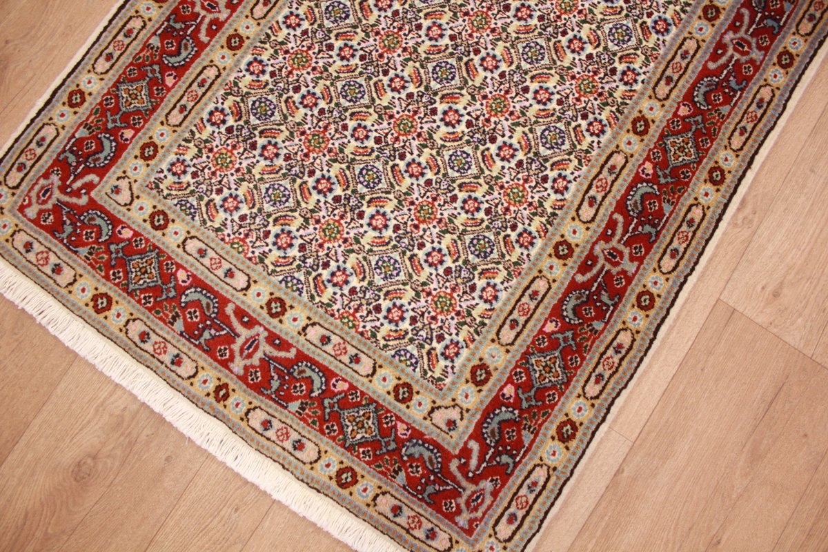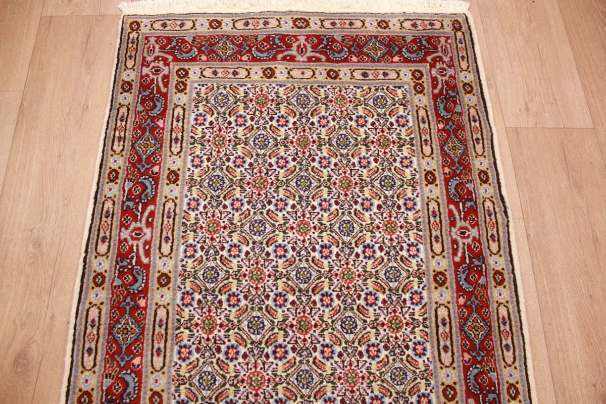 Moud respectively Mood is the probably world-wide most famous borough of South Khorasan's provincial capital Birjand in Persia. The last prince of Birjand was Shah Seyyed Ali Kazemi who came from Moud, a relative of the emperor Shah Reza Pahlavi and the Prime minister Asadollah Alam. Moud woollen blankets and carpets have normally a curvilinear design with a sun flower shaped picture in the center. The production of such carpets is usually very high-quality and these are also accordingly expensive therefore. These carpets are made of wool.