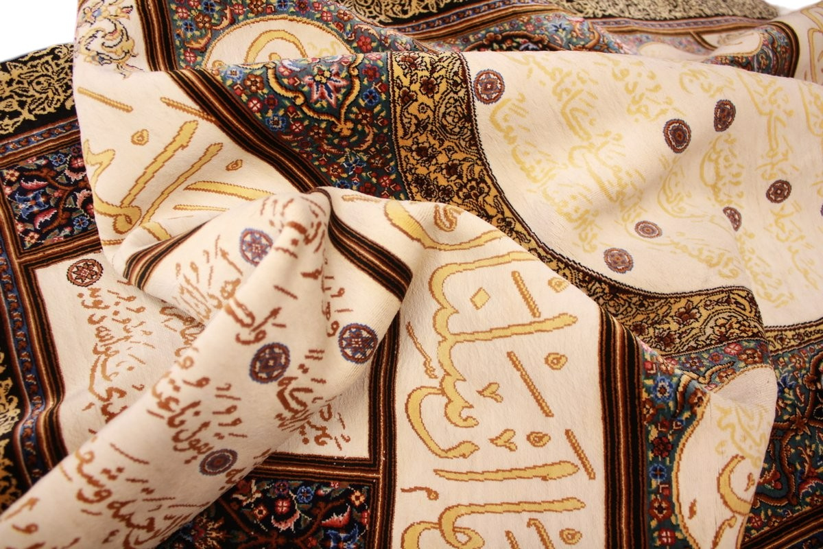 The city of Qom is considered a sacred place among persians, where many make pilgrimages for inner peace with God. Its weaving industry, started only in the 20th century, has developed an unequalled reputation for spectacular pieces of pure hand-woven silk. Qom has no pattern unique to this city, so its carpets are produced in a variety of beautiful and historic designs, demanding prices in the highest range of all Persian weaving.