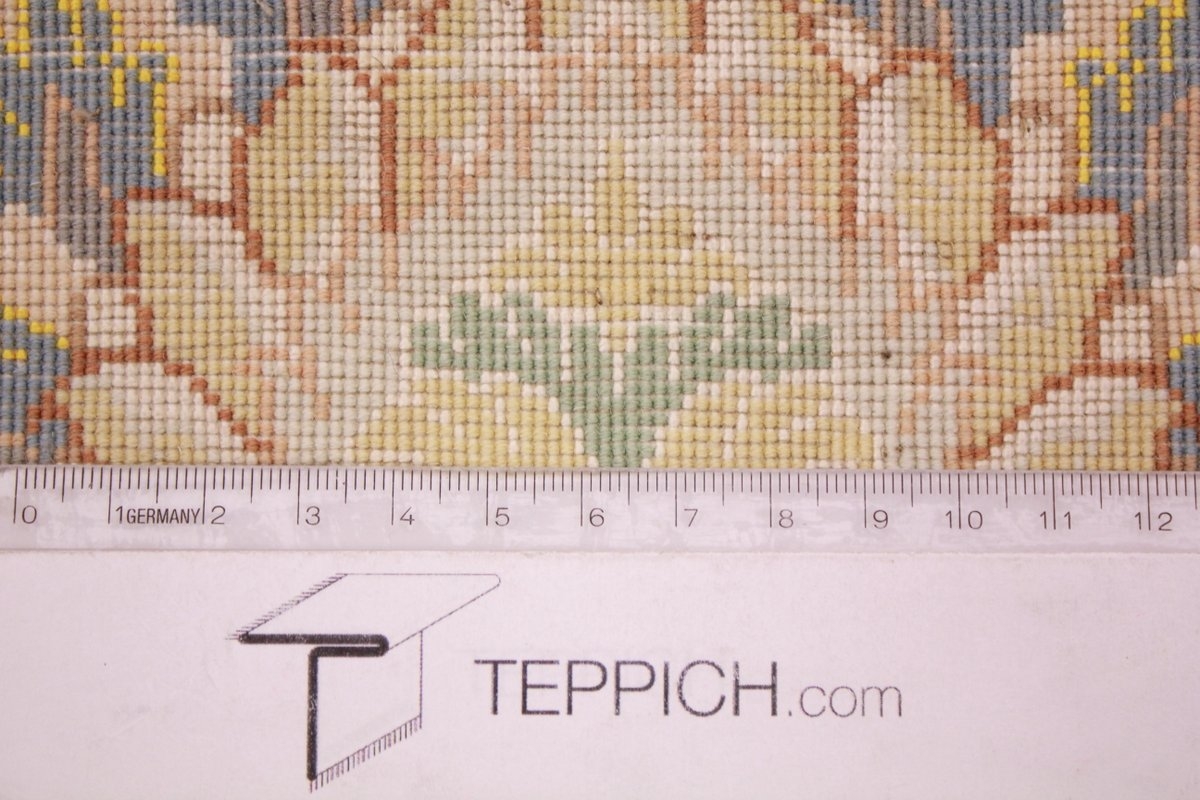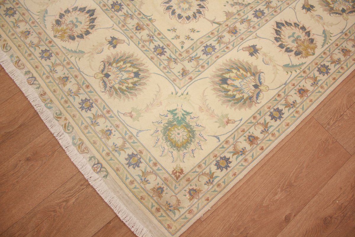 Taabriz is probably the most prolific carpet-producing center in the world, and certainly one of the oldest. This enchanted city was established more than a thousand years ago. After many invasions, occupations and wars, Taabriz took the ancient techniques of the past and created a huge rug-exporting industry. The finest era of Persian rug weaving was the Safavid Dynasty (1499 - 1722), when the Safavids overthrew the Turks who had occupied Taabriz. They gave the city one of the first Royal workshops, making it the artistic center of Persian culture. In spite of all the later conquests and political restructurings, Taabriz managed to keep these ancient traditions alive. Today, many rugs produced in Taabriz emulate the artististic heritage of the Persian Safavid carpet, and when a designer in any part of the world wants to commission a certain pattern to be hand-woven, Taabriz is the city that he visits. Attesting to their pride in producing fine carpets, the master-weavers of Taabriz often weave their signature into a part of the carpet's border. These signatures can, of course, be found on extremely fine rugs made in other cities, but a signature on the 'ceremonial' border of a Taabriz Naqsheh is the ultimate in formality and sophistication. The material used for the pile of these rugs are wool, silk, or a combination of the two. A beautiful blend of fine Kurk wool and silk is the most common in a fine Taabriz, with wool only used in those of average quality. In the very finest carpets, the foundation of the rug is pure silk instead of cotton, and some even have 18 or 24 karat gold threads woven into the foundation, with 300 to 800 KPSI not being uncommon.