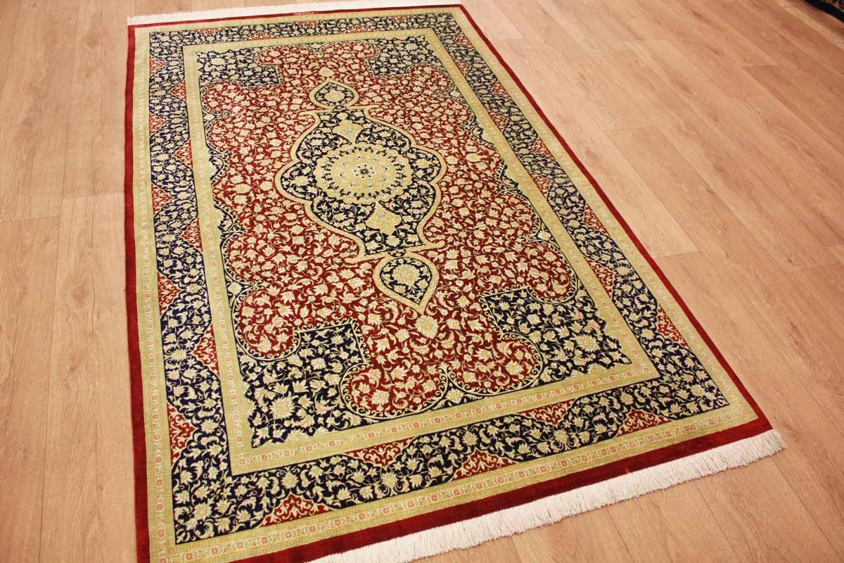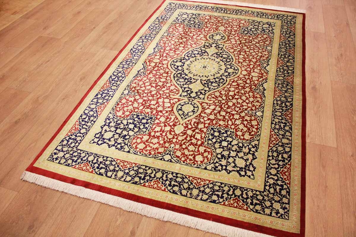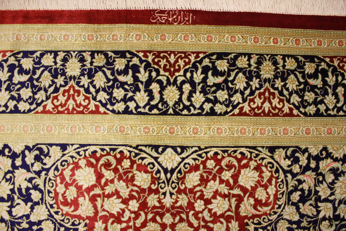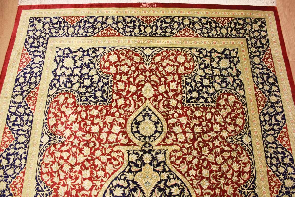 Persian carpet Ghom pure Silk 205x128 cm Rot
