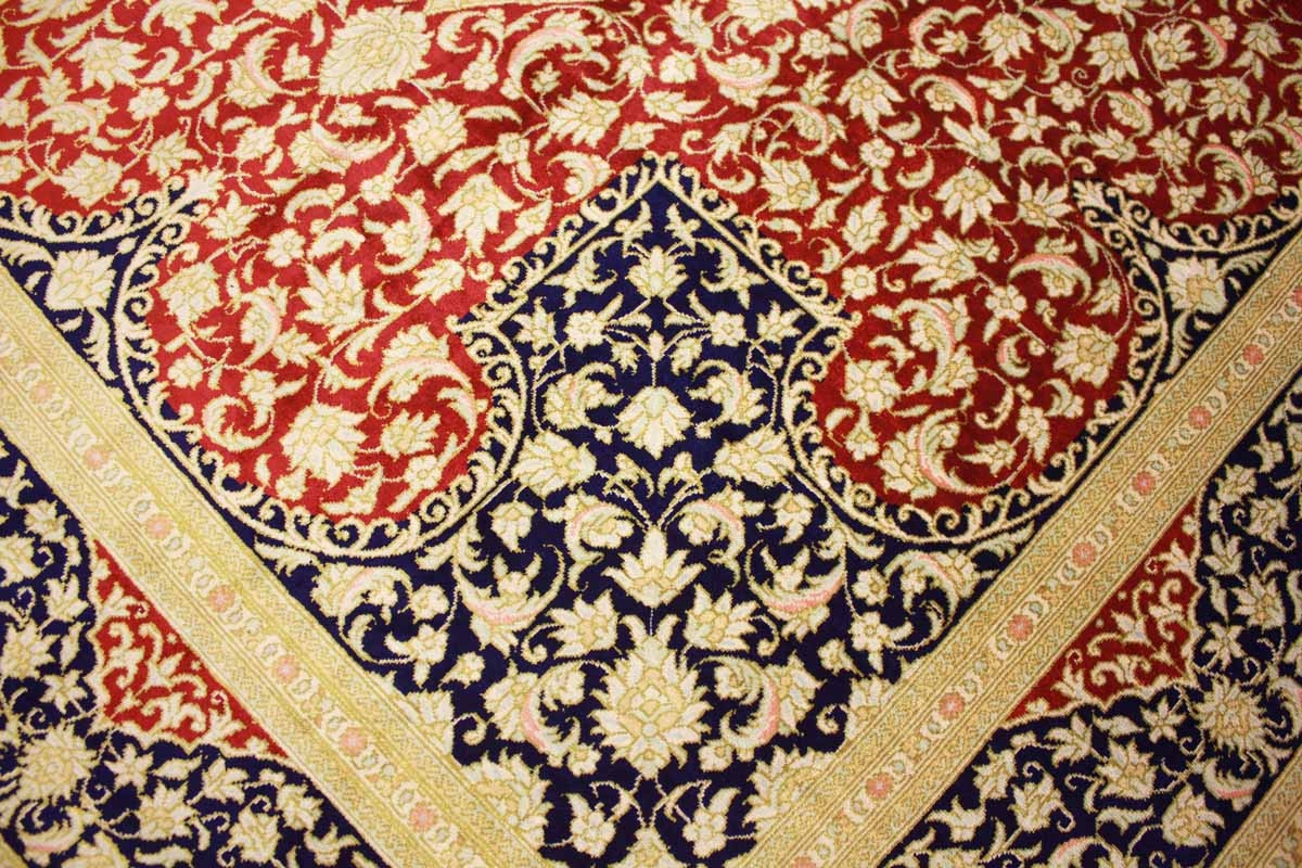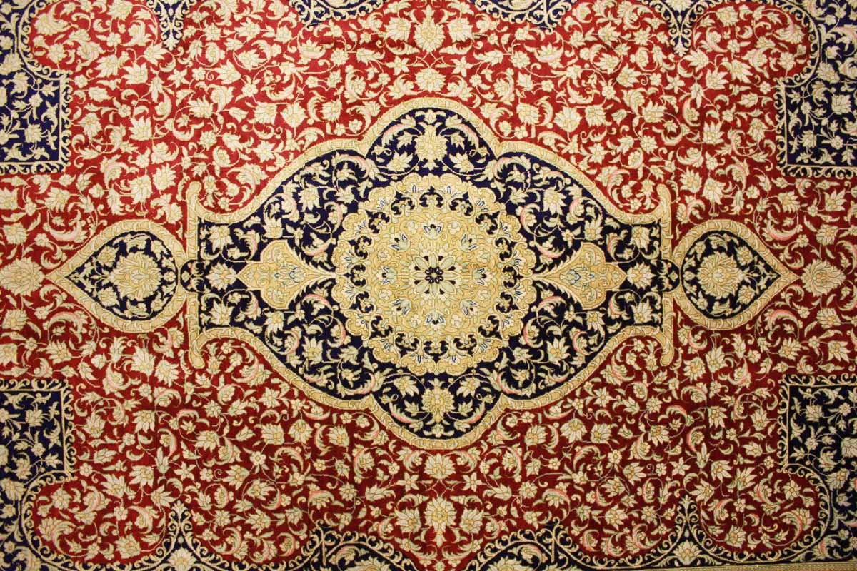 Brilliantly detailed medallions, all-over patterns of the greatest intricacy, and breath-taking pictorials and hunting scenes, attest to the craftsmanship of Persia's finest master-weavers. Some pieces of fine wool are also made there. Although signatures are found on fine rugs made elsewhere, the weavers of Qom take such enormous pride in their product that they almost always weave their signatures into a small part of the carpet´s border. Many shapes and sizes are produced, including squares, rectangles, oval or round, and the sizes may vary from a very small rug to a carpet which would suit the grand salon of a palace. The materials used can be wool, silk, or any combination of the two.