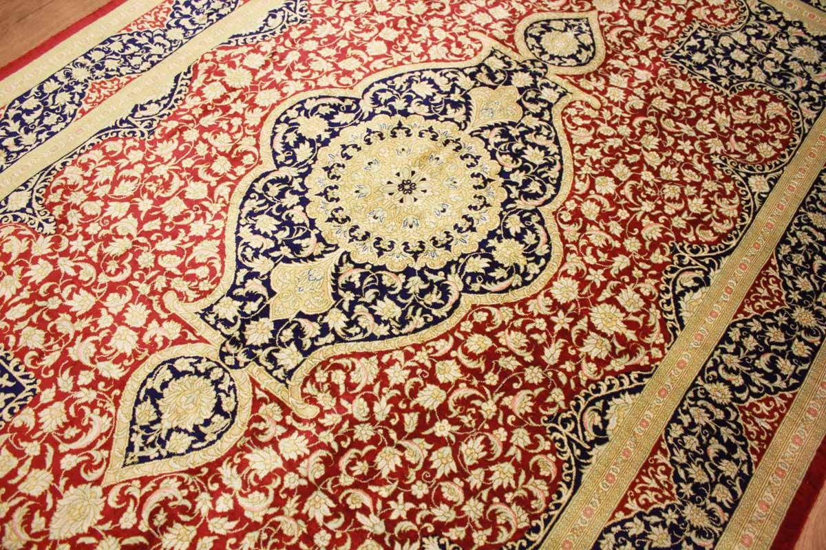 The city of Qom is considered a sacred place among persians, where many make pilgrimages for inner peace with God. Its weaving industry, started only in the 20th century, has developed an unequalled reputation for spectacular pieces of pure hand-woven silk. Qom has no pattern unique to this city, so its carpets are produced in a variety of beautiful and historic designs, demanding prices in the highest range of all Persian weaving.