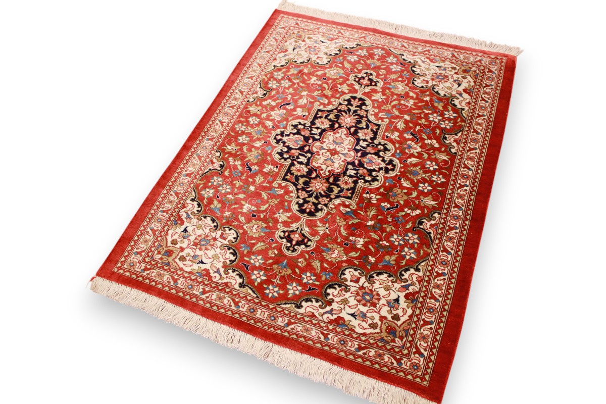 Brilliantly detailed medallions, all-over patterns of the greatest intricacy, and breath-taking pictorials and hunting scenes, attest to the craftsmanship of Persia's finest master-weavers. Some pieces of fine wool are also made there. Although signatures are found on fine rugs made elsewhere, the weavers of Qom take such enormous pride in their product that they almost always weave their signatures into a small part of the carpet´s border. Many shapes and sizes are produced, including squares, rectangles, oval or round, and the sizes may vary from a very small rug to a carpet which would suit the grand salon of a palace. The materials used can be wool, silk, or any combination of the two.