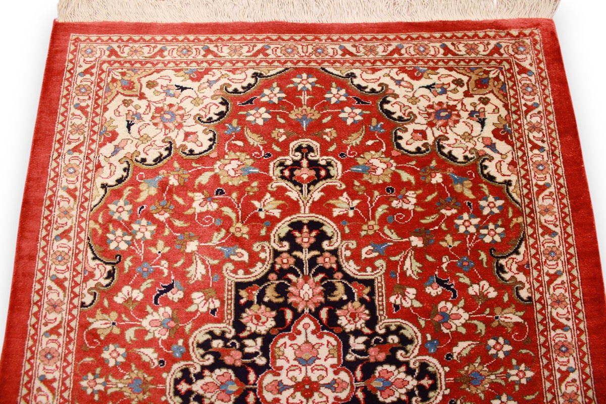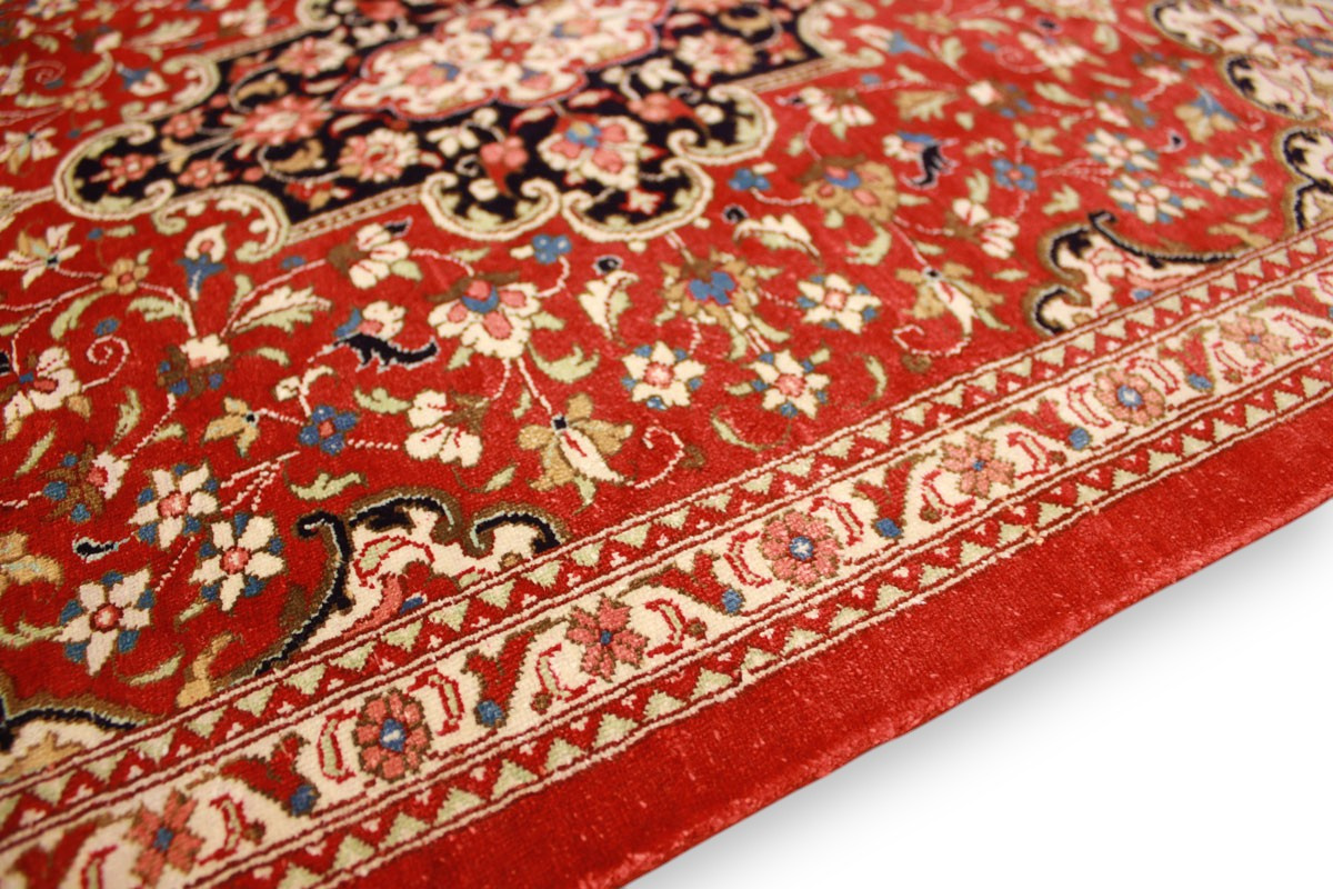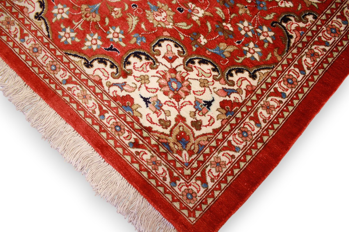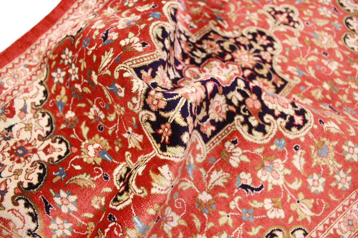The city of Qom is considered a sacred place among persians, where many make pilgrimages for inner peace with God. Its weaving industry, started only in the 20th century, has developed an unequalled reputation for spectacular pieces of pure hand-woven silk. Qom has no pattern unique to this city, so its carpets are produced in a variety of beautiful and historic designs, demanding prices in the highest range of all Persian weaving.