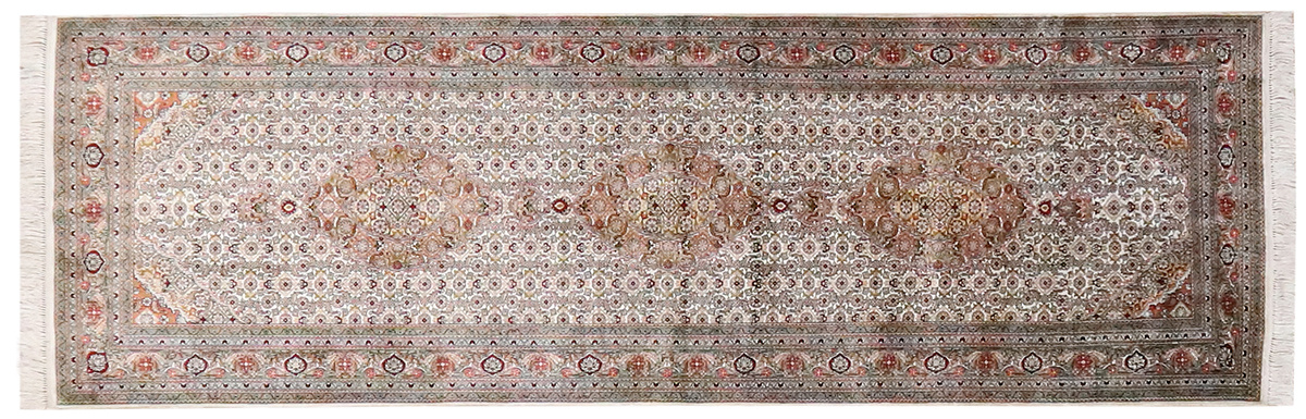 The city of Qom is considered a sacred place among persians, where many make pilgrimages for inner peace with God. Its weaving industry, started only in the 20th century, has developed an unequalled reputation for spectacular pieces of pure hand-woven silk. Qom has no pattern unique to this city, so its carpets are produced in a variety of beautiful and historic designs, demanding prices in the highest range of all Persian weaving.