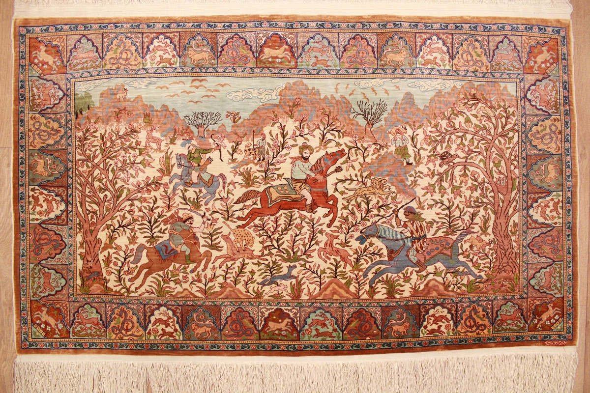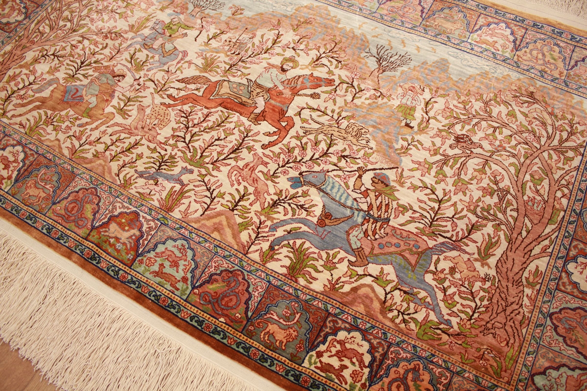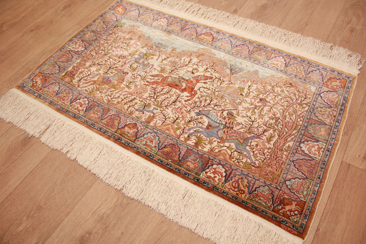 Hereke carpets are hand knotted very carefully in Turkey. They consist mostly of pure silk and can reach a knot density of up to 5 million knots / square meter. Hereke carpets are very valuable and decorative. They are generally knotted in smaller sizes and used as wall carpet.