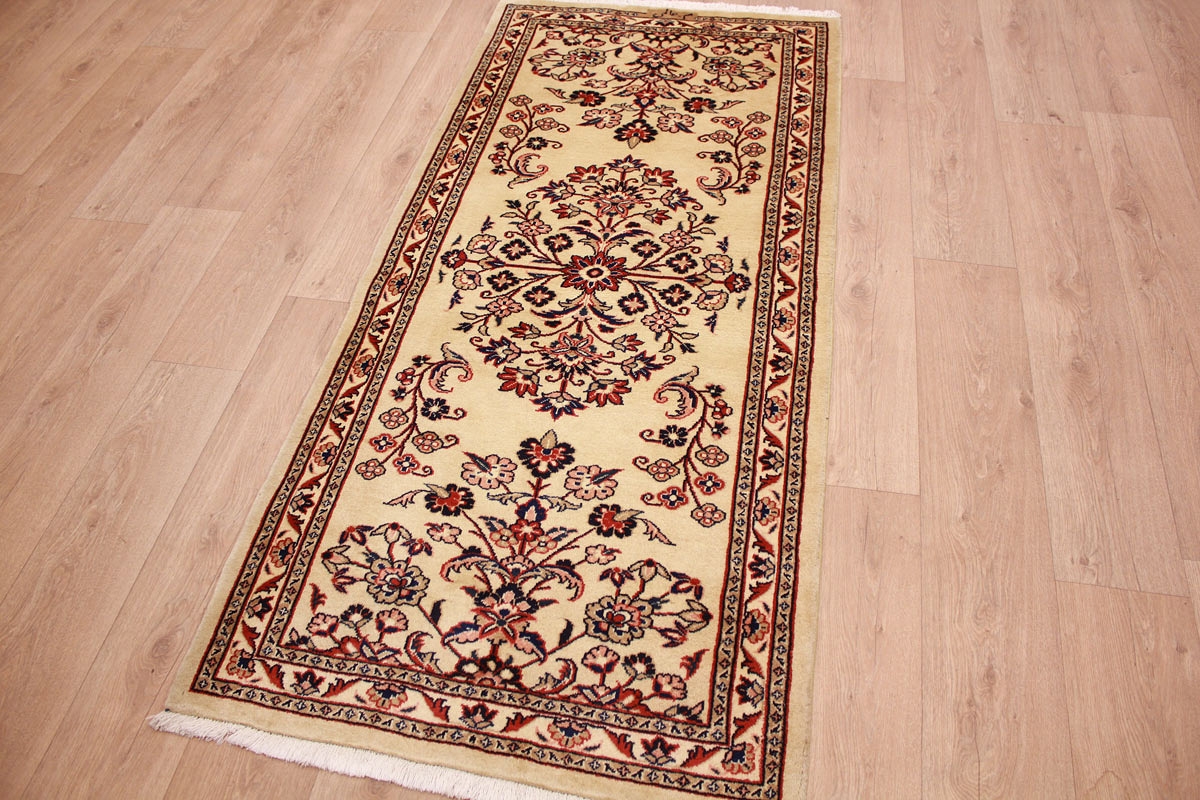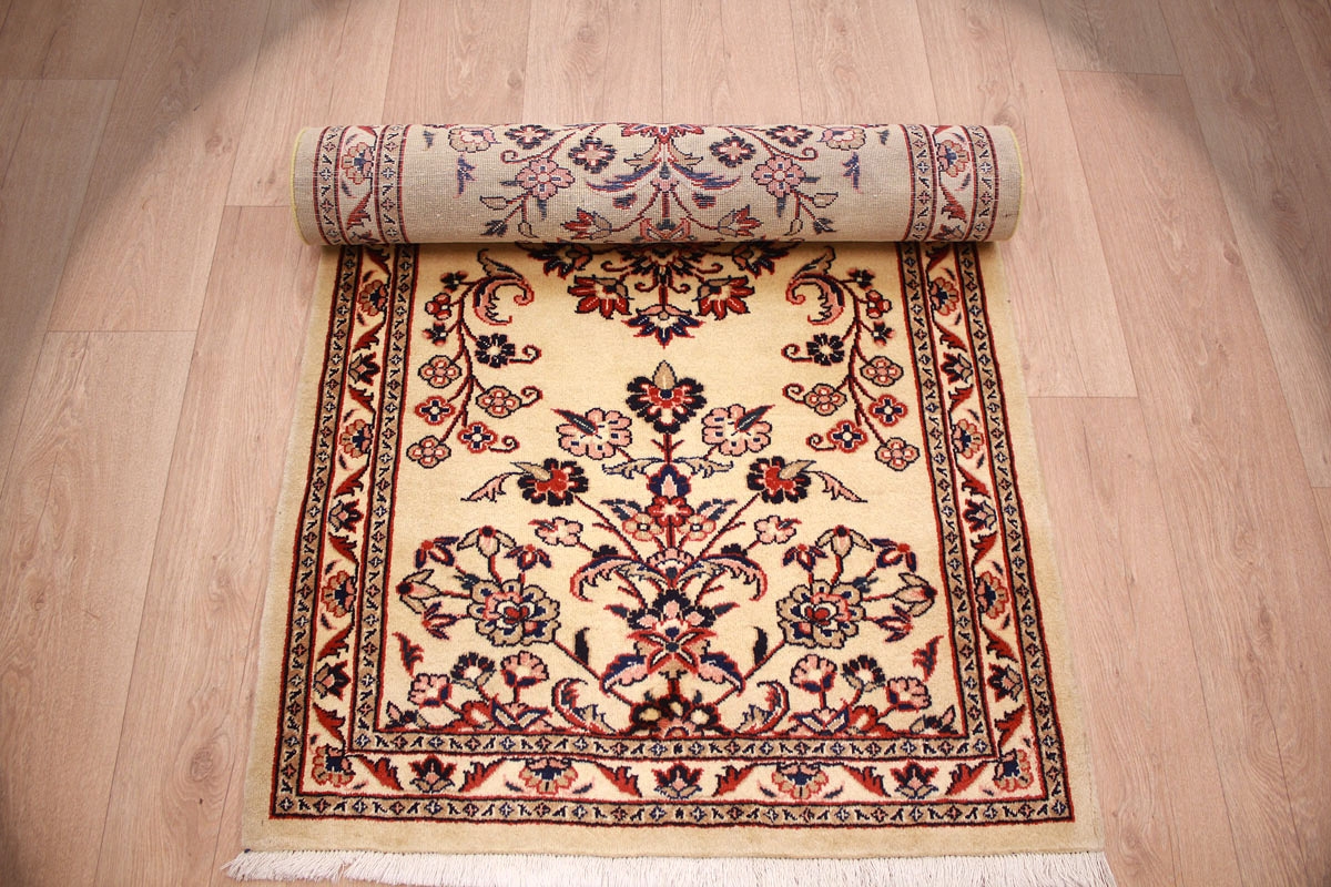 Runner Sarough persian carpet pure wool 203x91 cm Beige