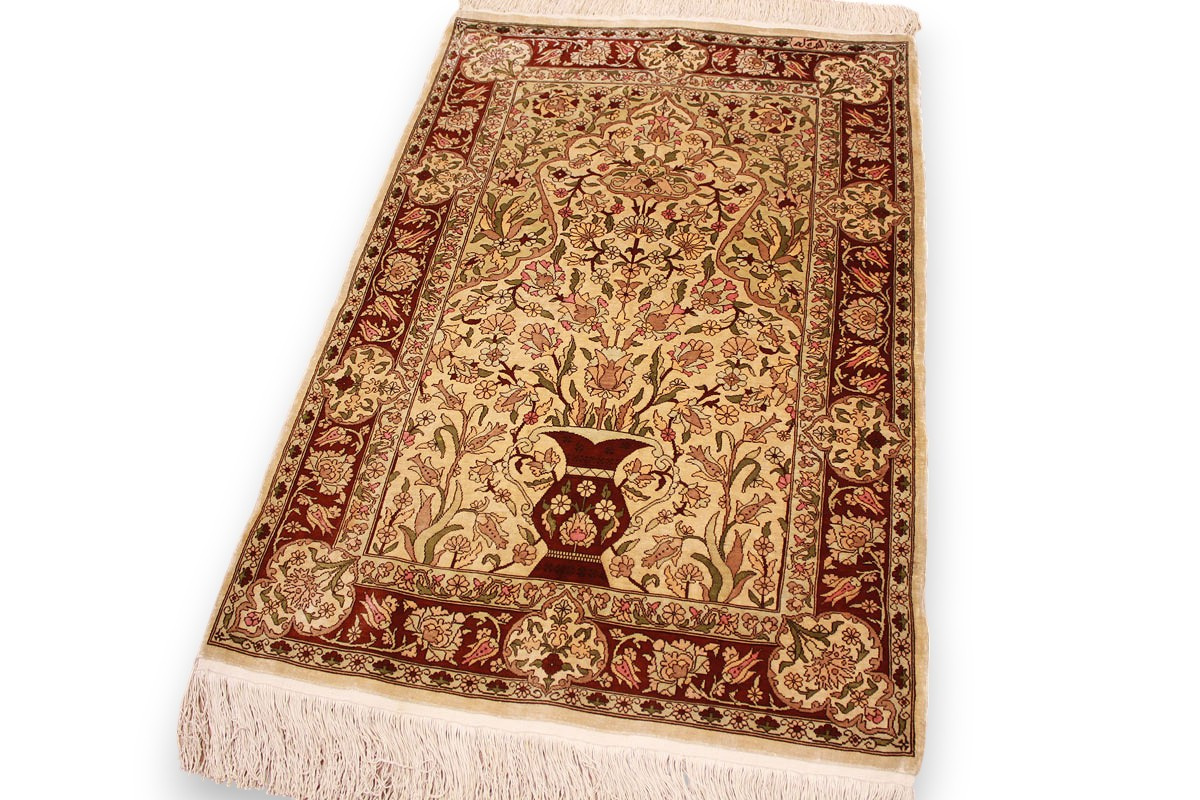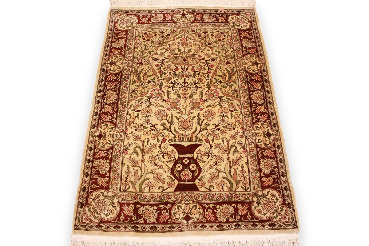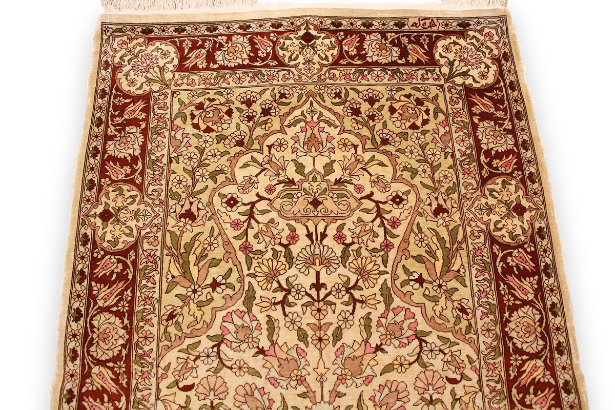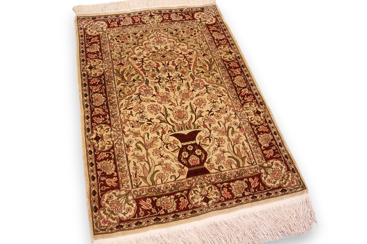 Hereke carpets are hand knotted very carefully in Turkey. They consist mostly of pure silk and can reach a knot density of up to 5 million knots / square meter. Hereke carpets are very valuable and decorative. They are generally knotted in smaller sizes and used as wall carpet.