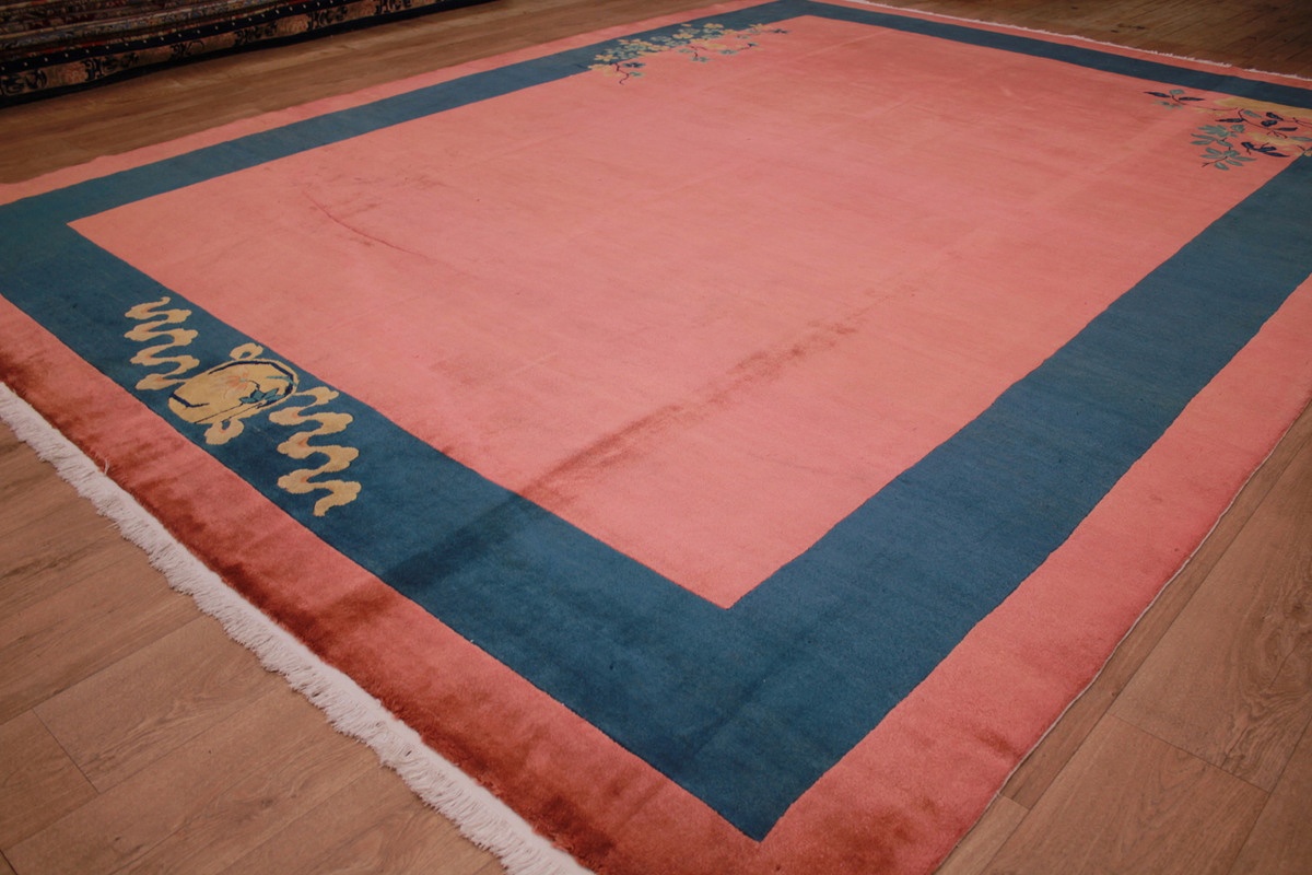 Chinese carpets are hand knotted in China. Chinese knotters use materials such as wool, virgin wool or silk for their carpets. Chinese wool carpets usually have an old Chinese motif such as the famous dragon motif. Silk carpets from China are inspired by Persian pattern.