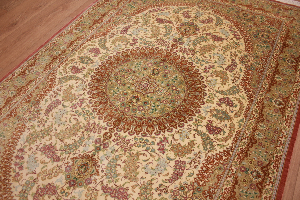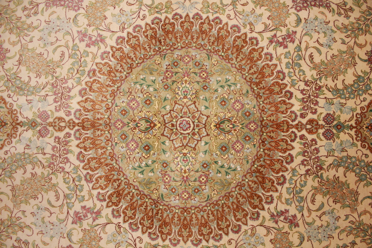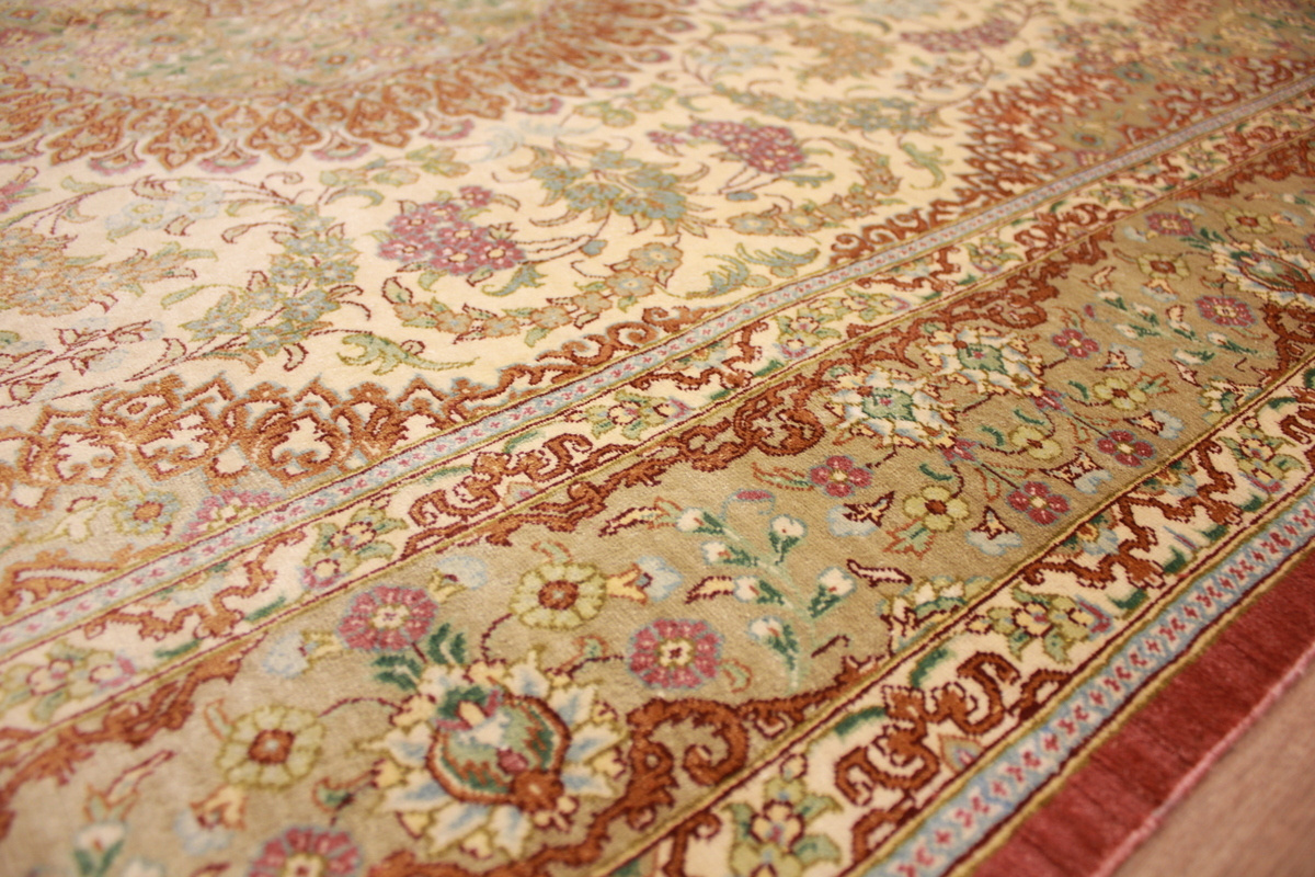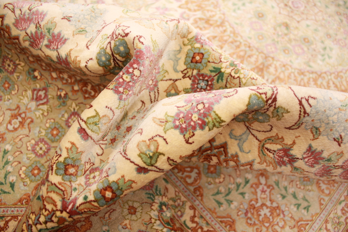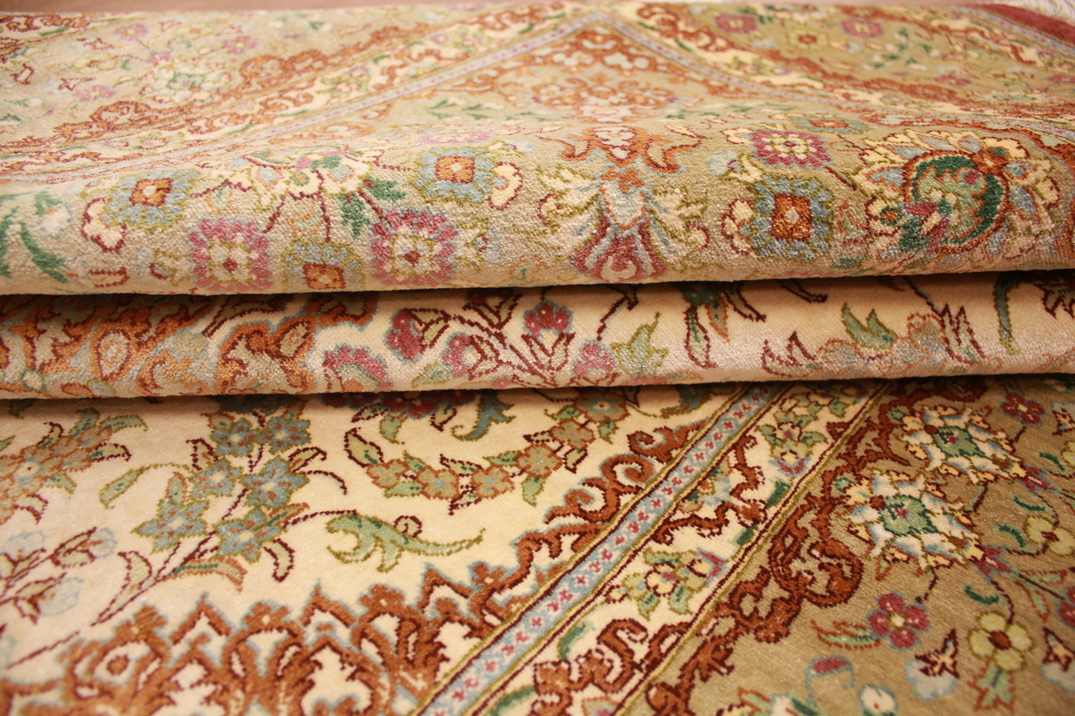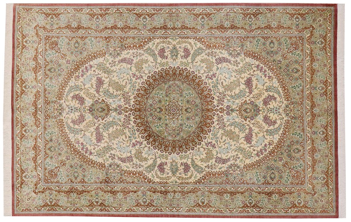 The city of Qom is considered a sacred place among persians, where many make pilgrimages for inner peace with God. Its weaving industry, started only in the 20th century, has developed an unequalled reputation for spectacular pieces of pure hand-woven silk. Qom has no pattern unique to this city, so its carpets are produced in a variety of beautiful and historic designs, demanding prices in the highest range of all Persian weaving.