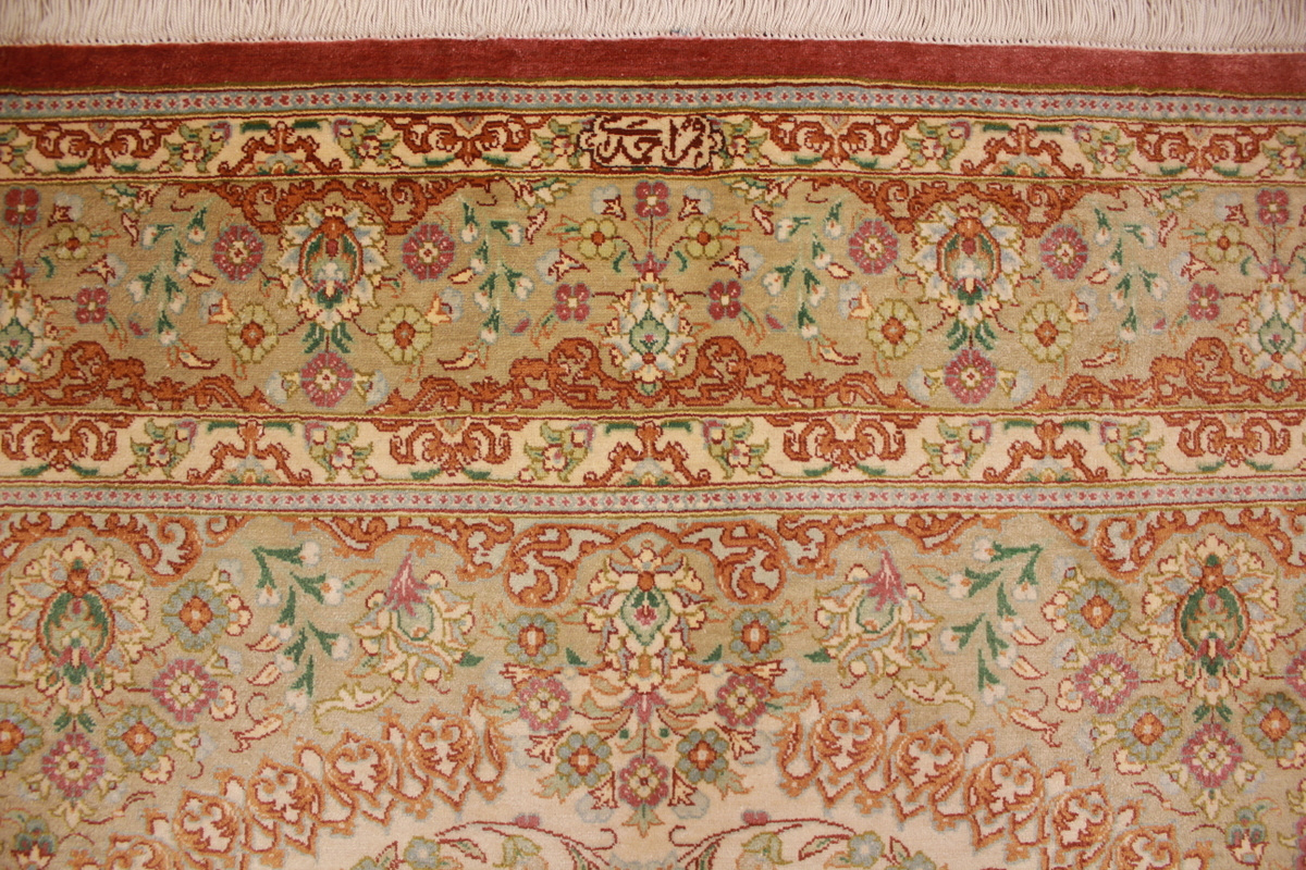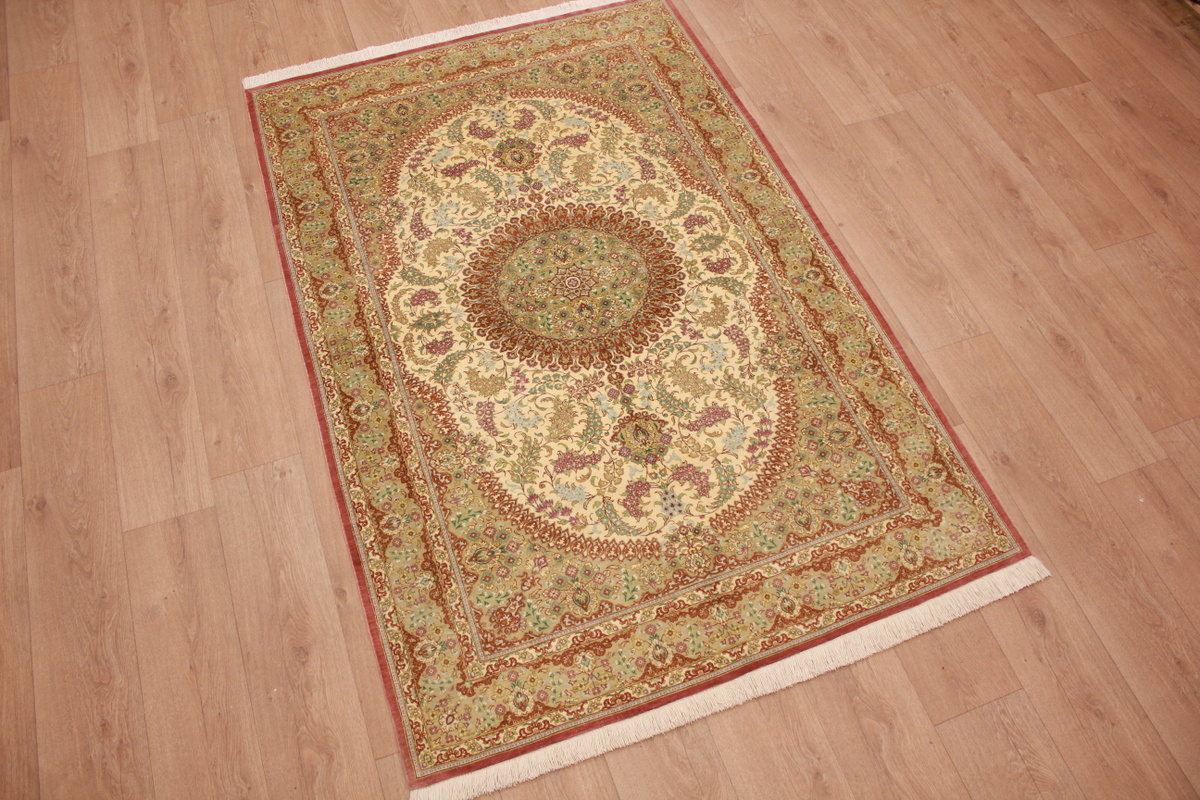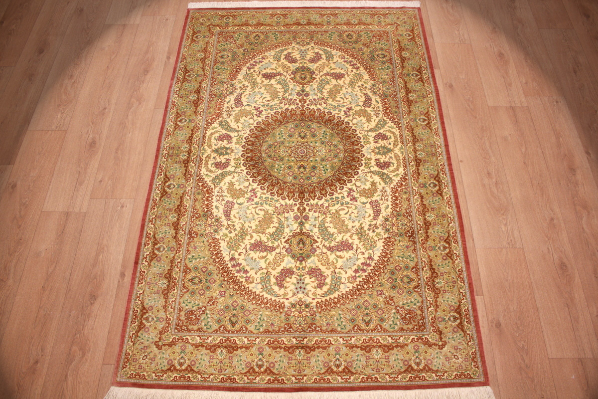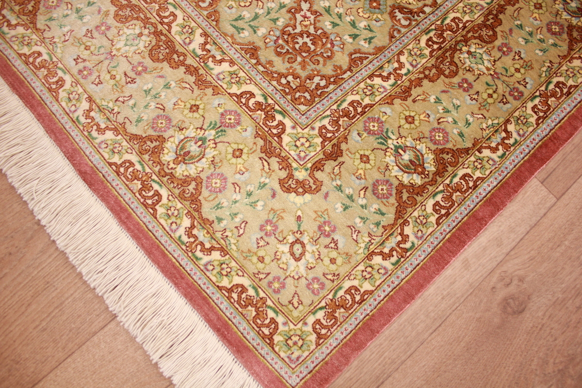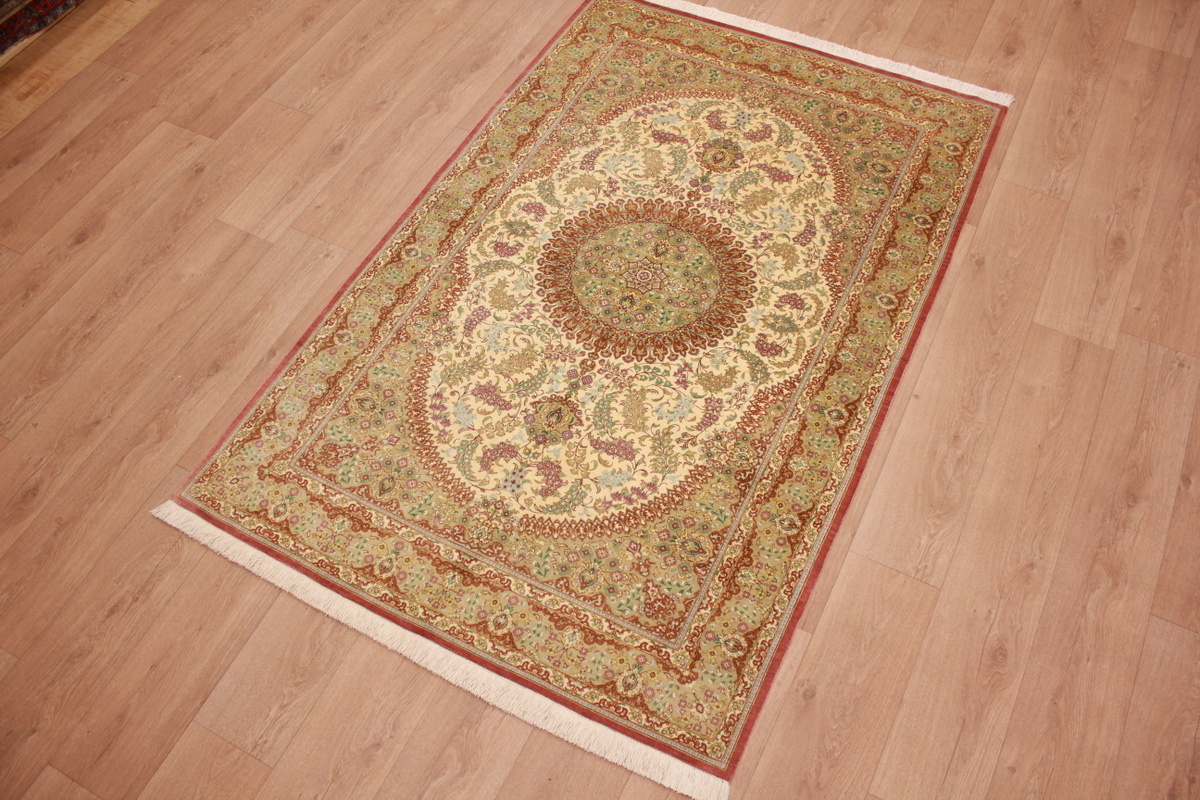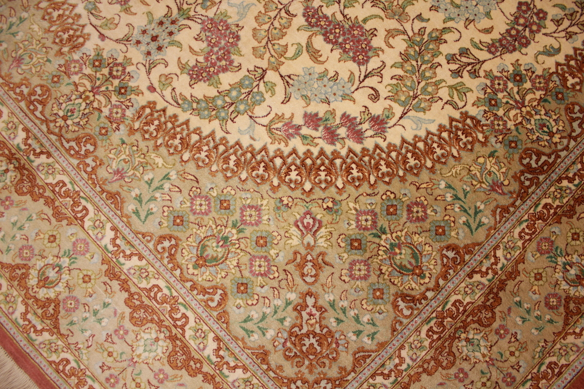 Qom (Qum / Ghom) carpets are among the finest in the world. Although it does not boast a long and ancient history, Qom, south of Tehran, creates exceptional works of art, frequently entirely in pure silk. The carpet industry of this city is incredibly modern, producing quality which is extraordinary. Prices tend to be very high, reflecting super quality of materials, design and execution . Syles and patterns vary tremendously, as this city usually recreates ancient historical patterns from many other noble sources. Most respected are hunting scenes or other pictorials, not to mention the brilliant medallions and borders of unbelievable finesse.
