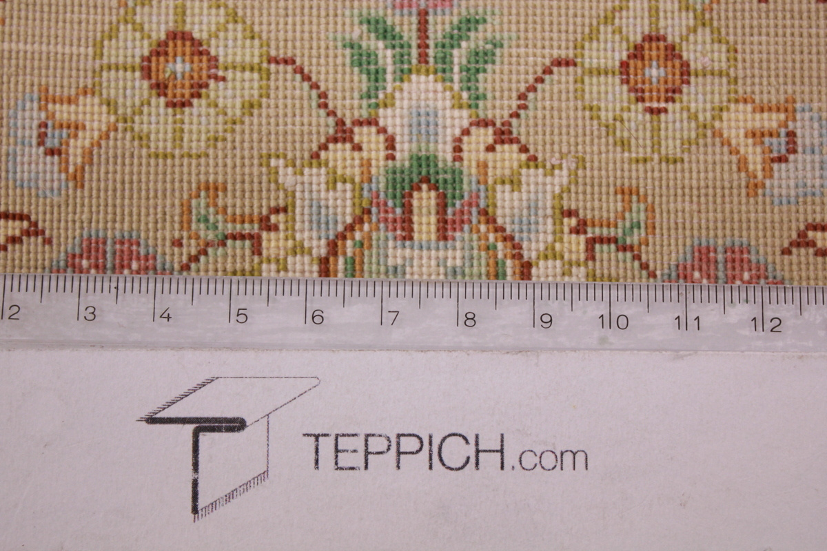 Rugs that where made in Kashan feature Persian knots, the weave is fine to exceptionally fine. The number of knots range from around 120 KPSI up to 842 Kpsi.