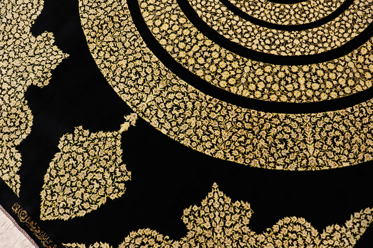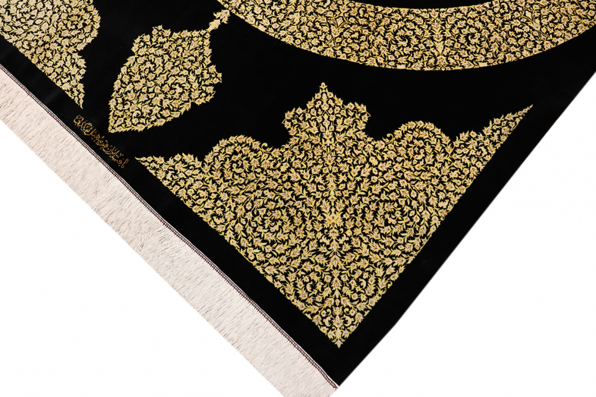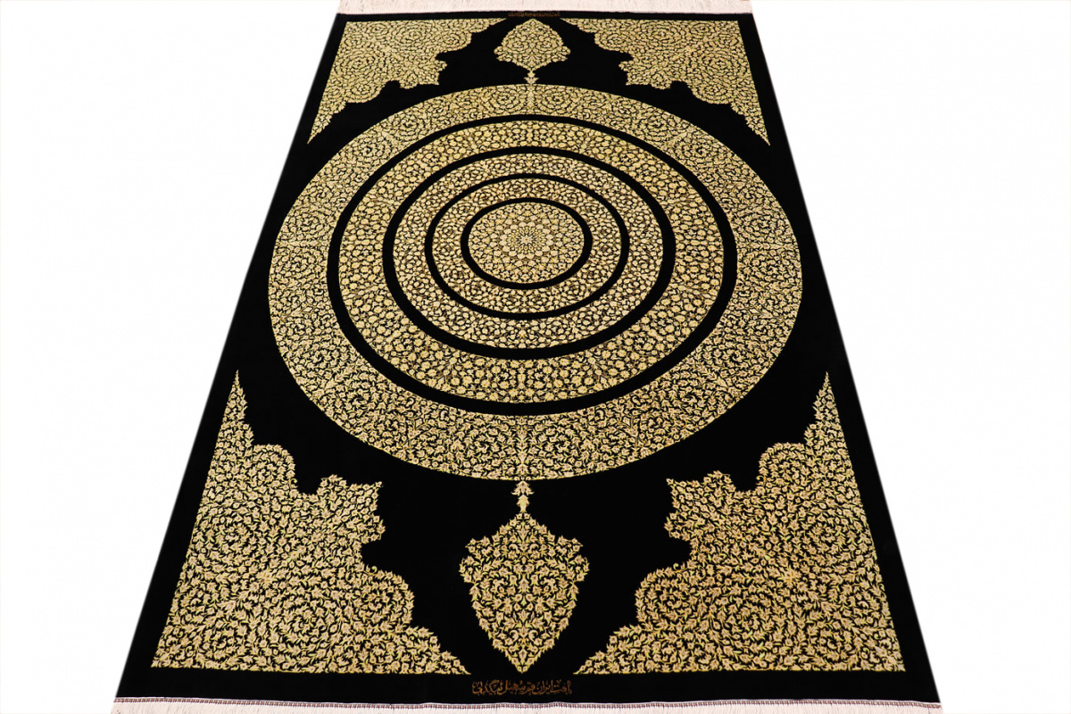 Exclusive Persian carpet Qum pure Silk 213x135 cm Black & Gold