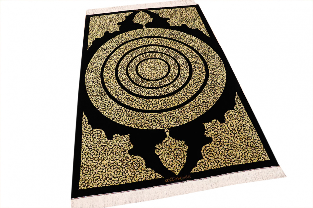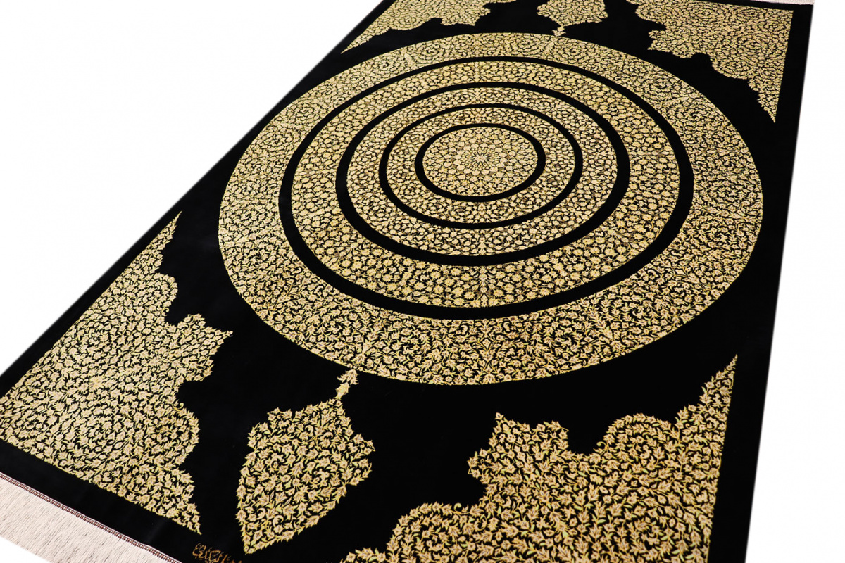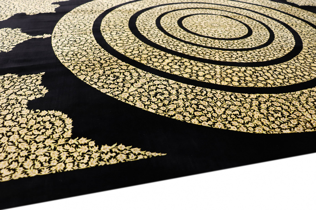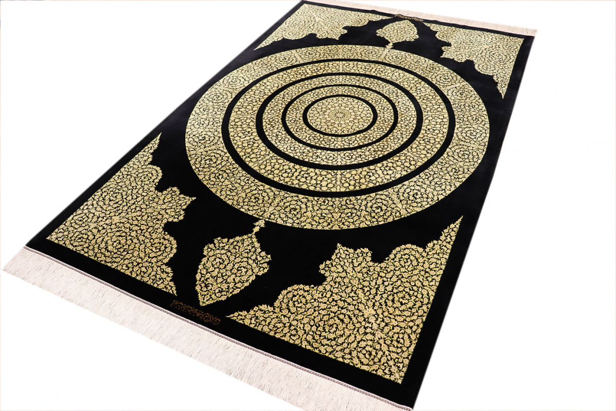 Exclusive Persian carpet Qum pure Silk 213x135 cm Black & Gold