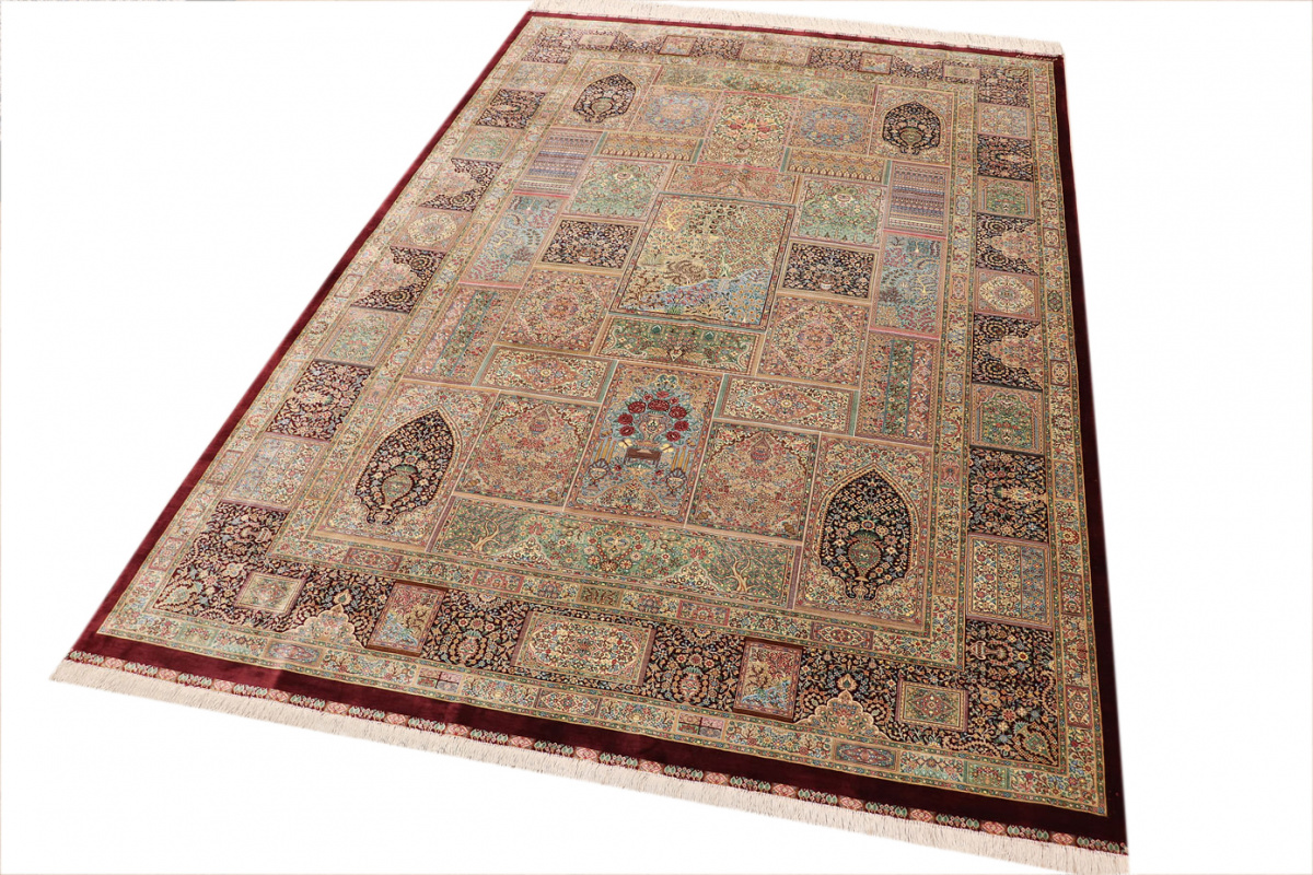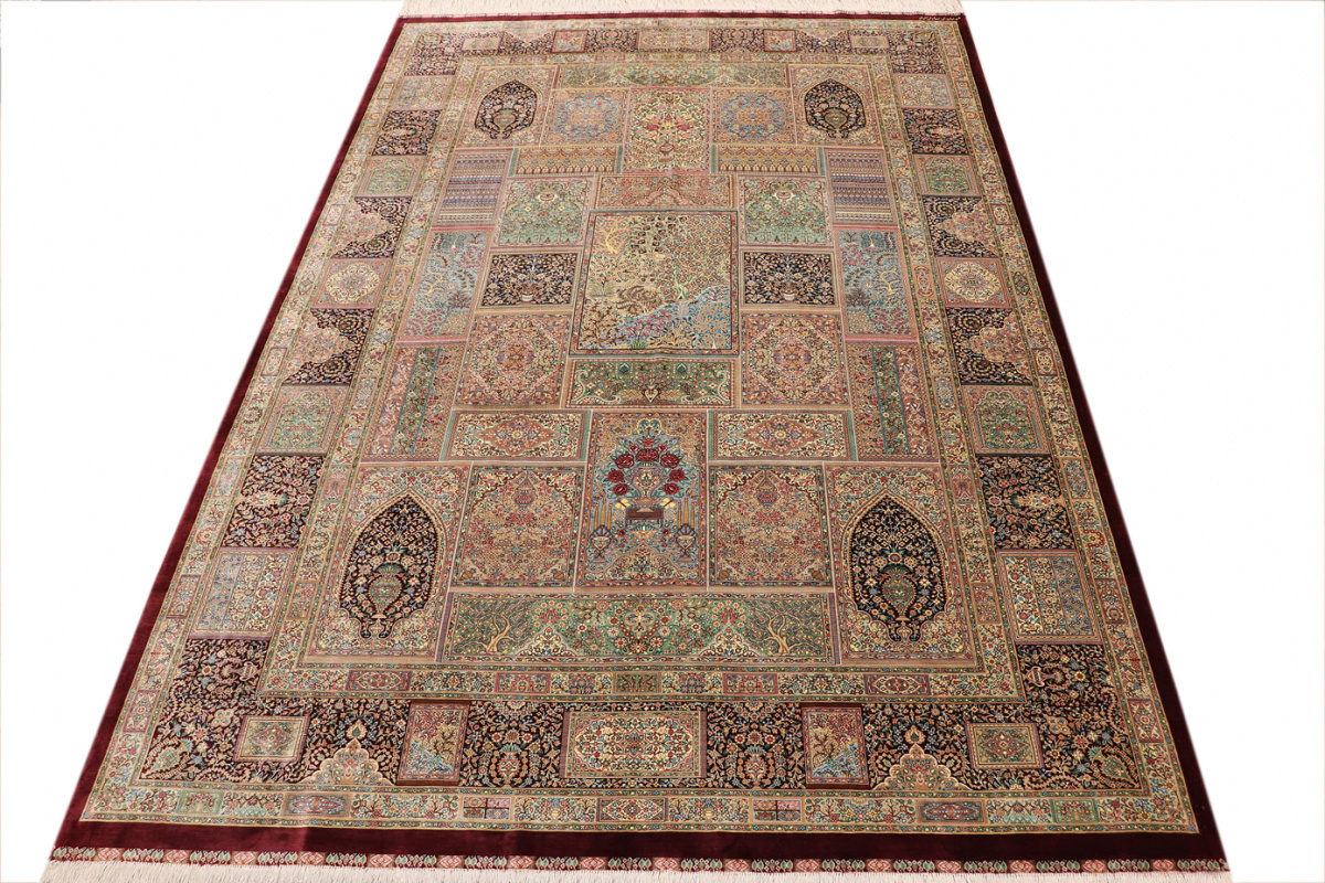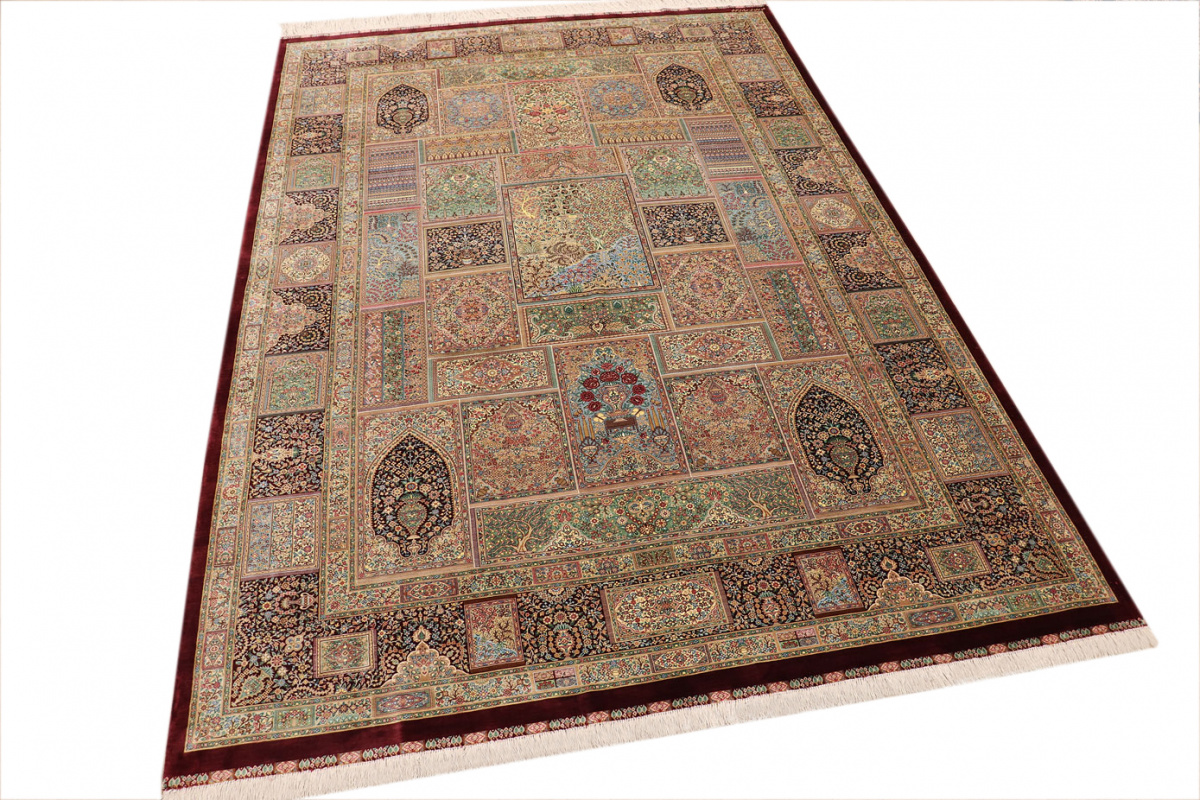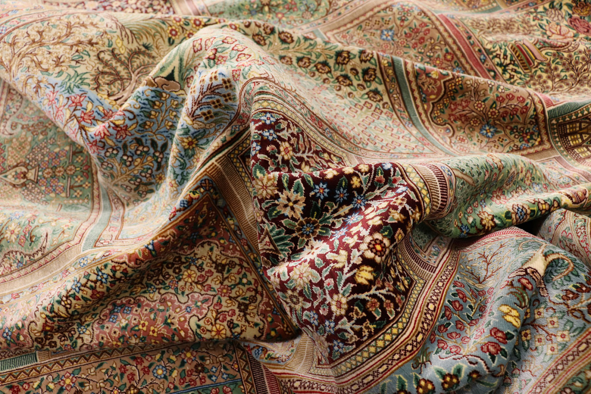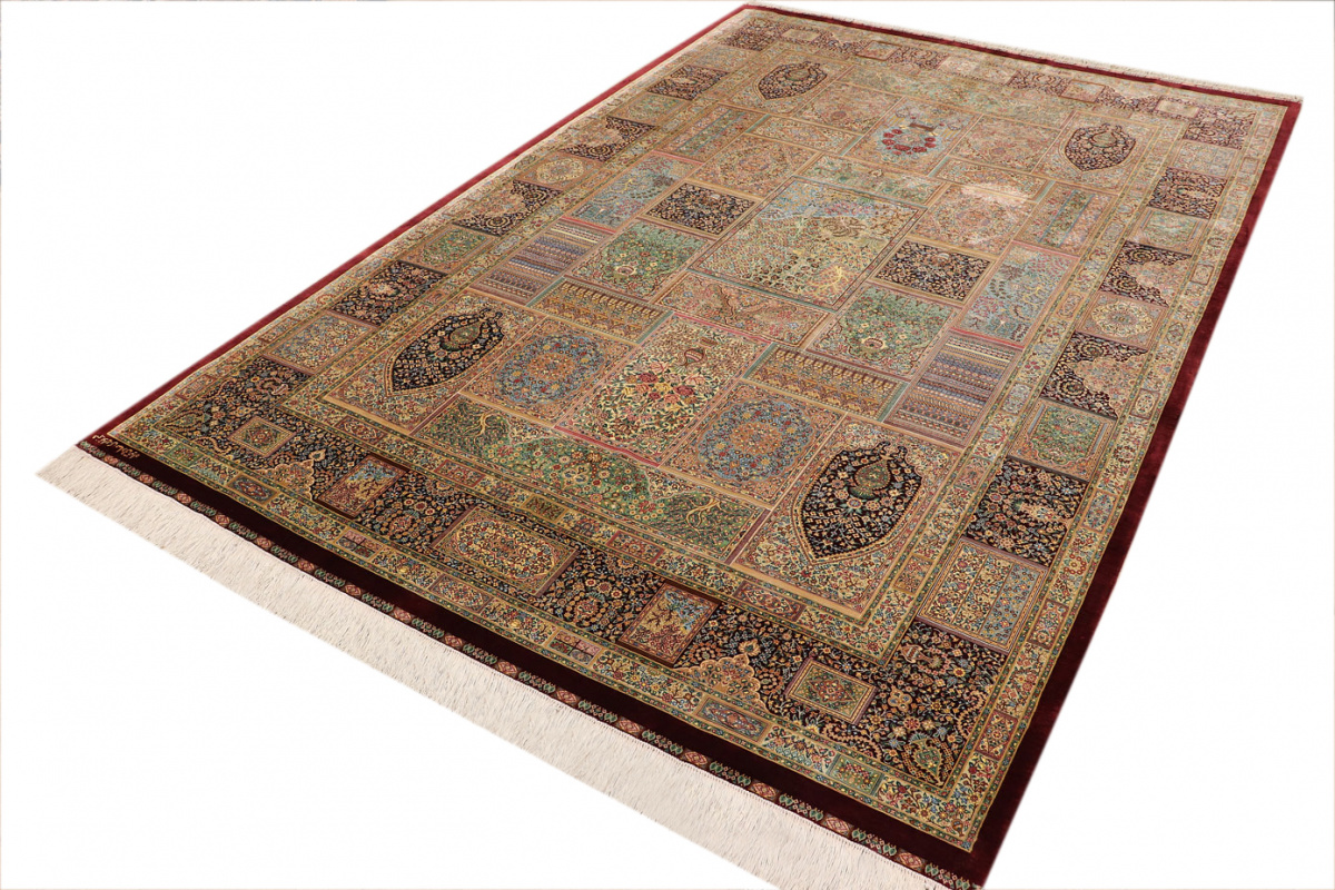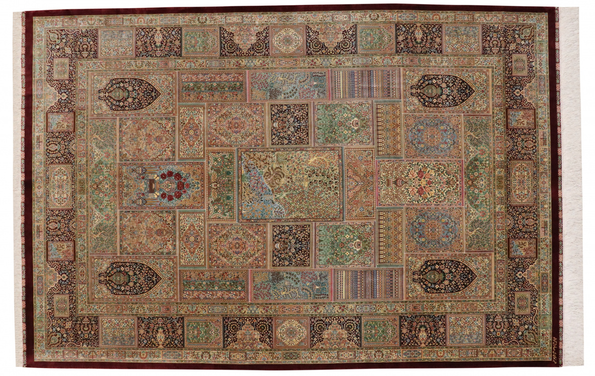 The city of Qom is considered a sacred place among persians, where many make pilgrimages for inner peace with God. Its weaving industry, started only in the 20th century, has developed an unequalled reputation for spectacular pieces of pure hand-woven silk. Qom has no pattern unique to this city, so its carpets are produced in a variety of beautiful and historic designs, demanding prices in the highest range of all Persian weaving.