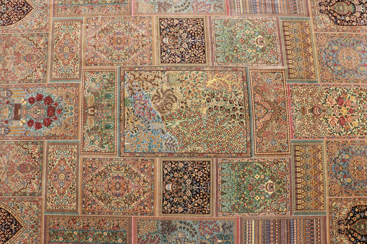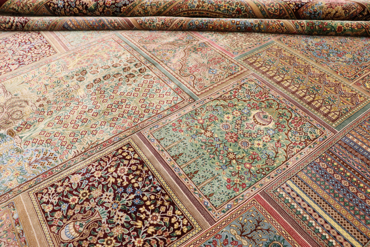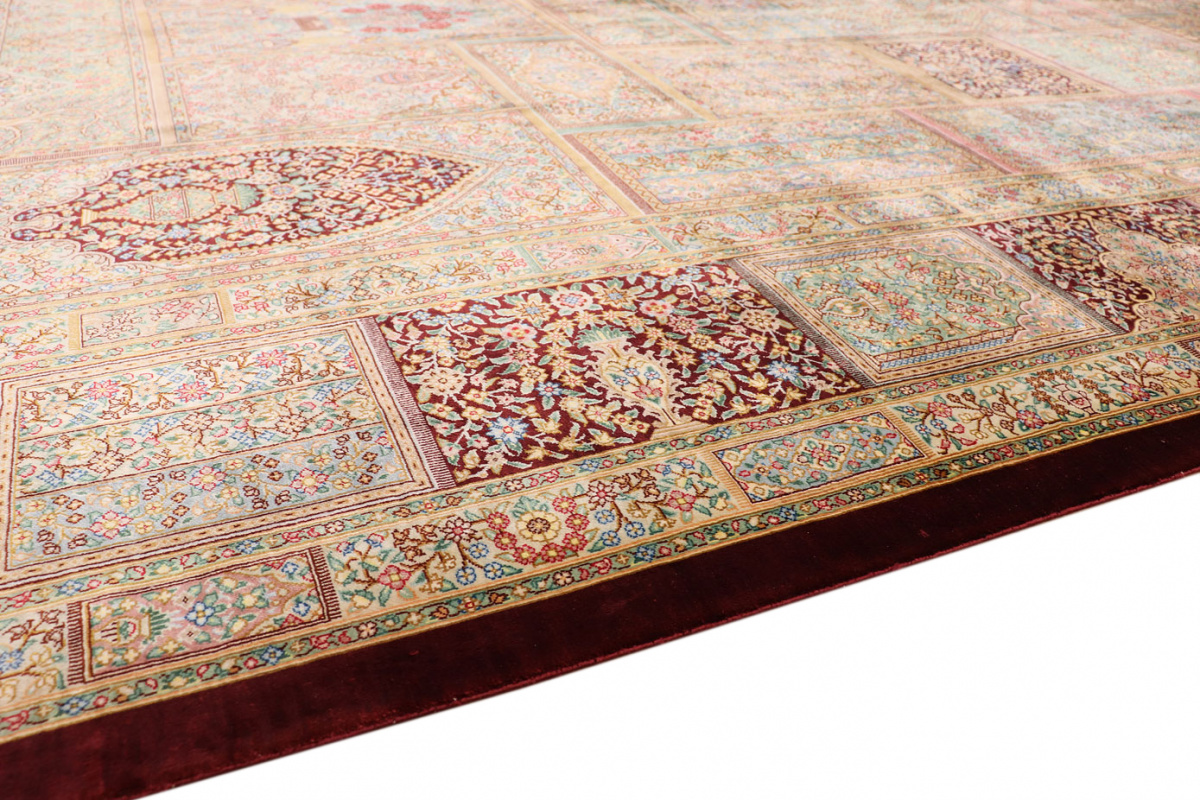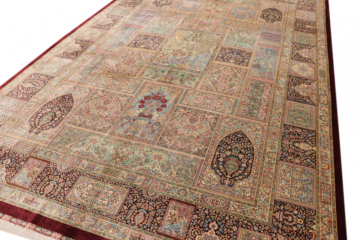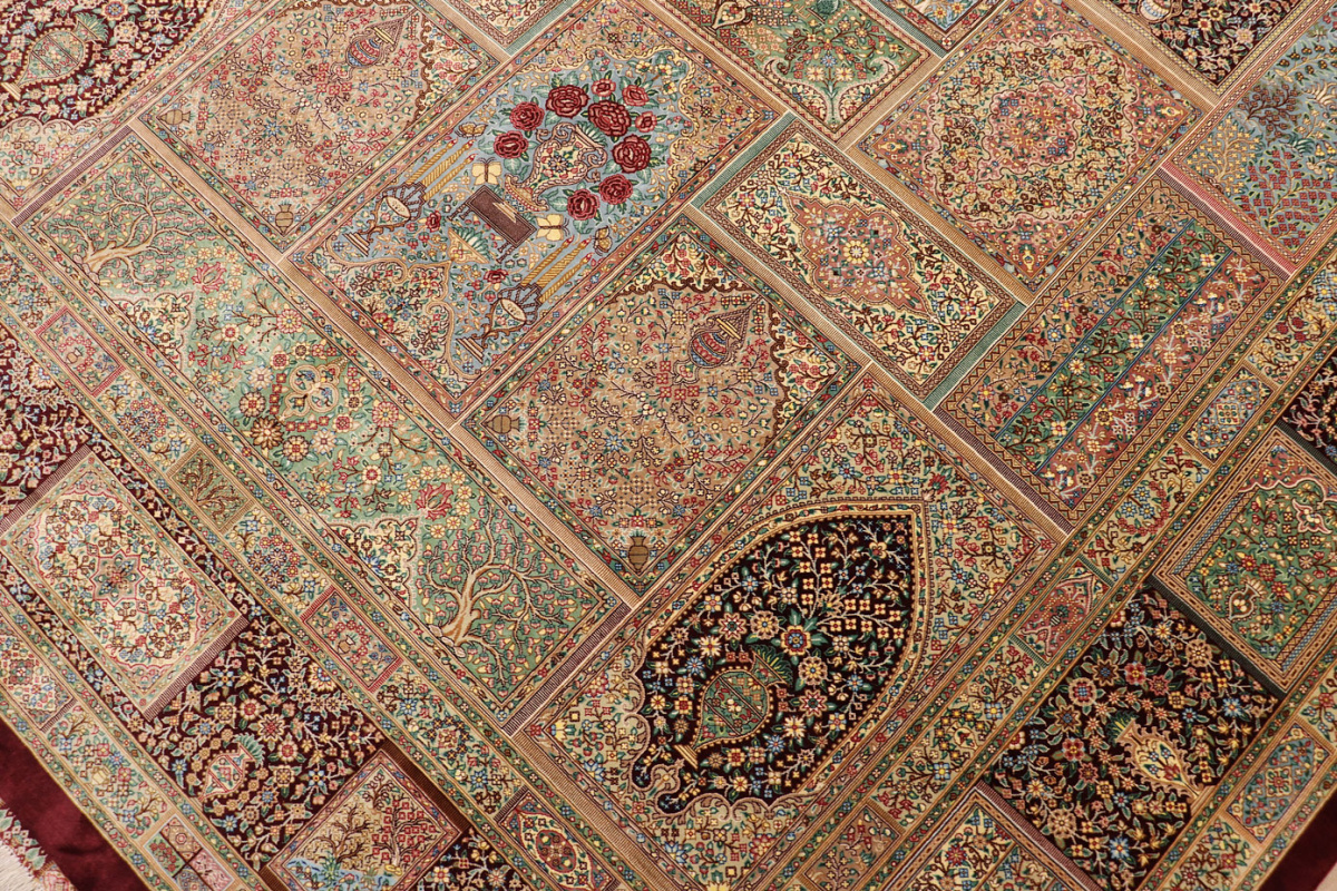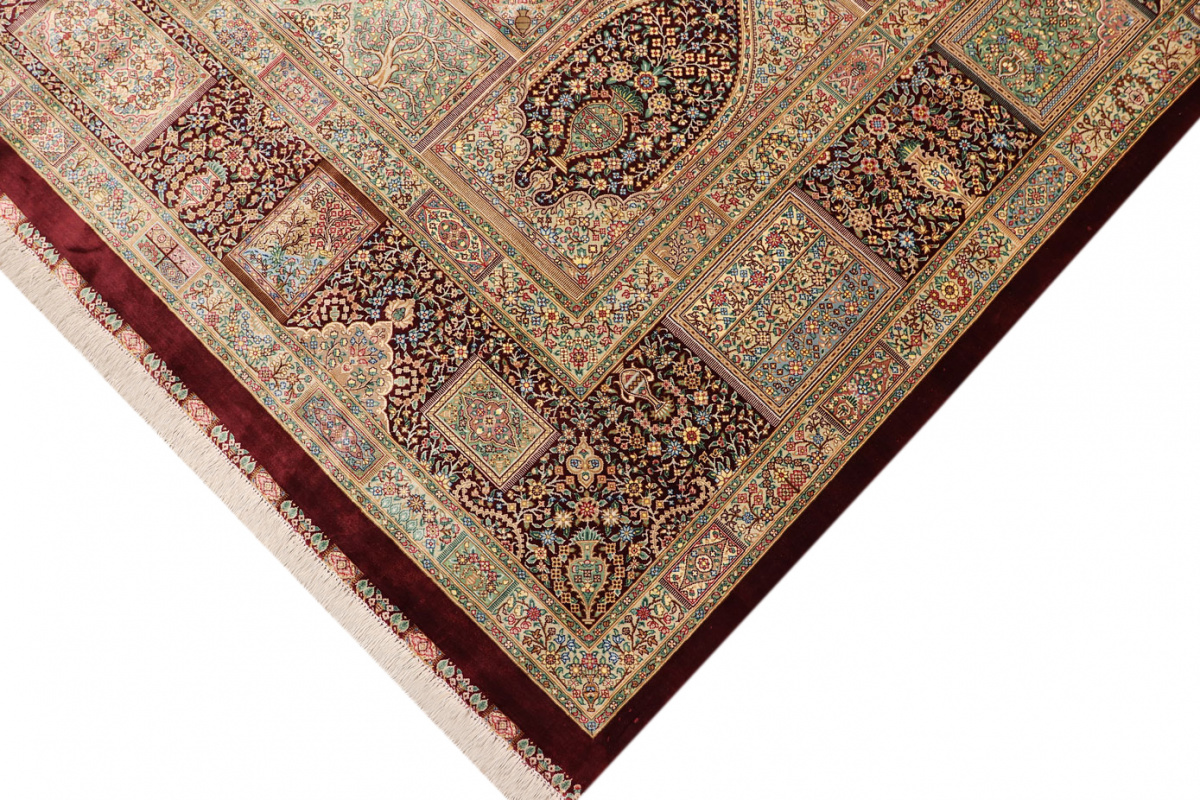 The city of Qom is considered a sacred place among persians, where many make pilgrimages for inner peace with God. Its weaving industry, started only in the 20th century, has developed an unequalled reputation for spectacular pieces of pure hand-woven silk. Qom has no pattern unique to this city, so its carpets are produced in a variety of beautiful and historic designs, demanding prices in the highest range of all Persian weaving.
