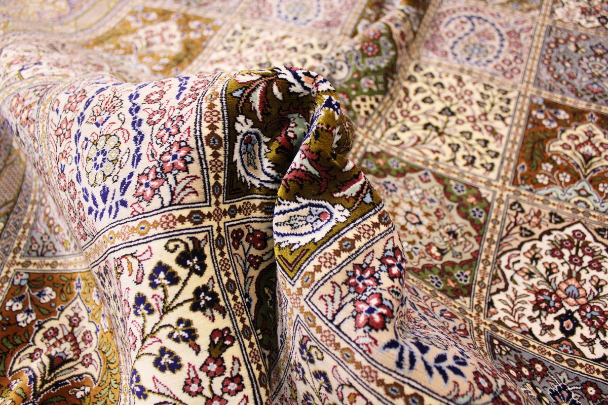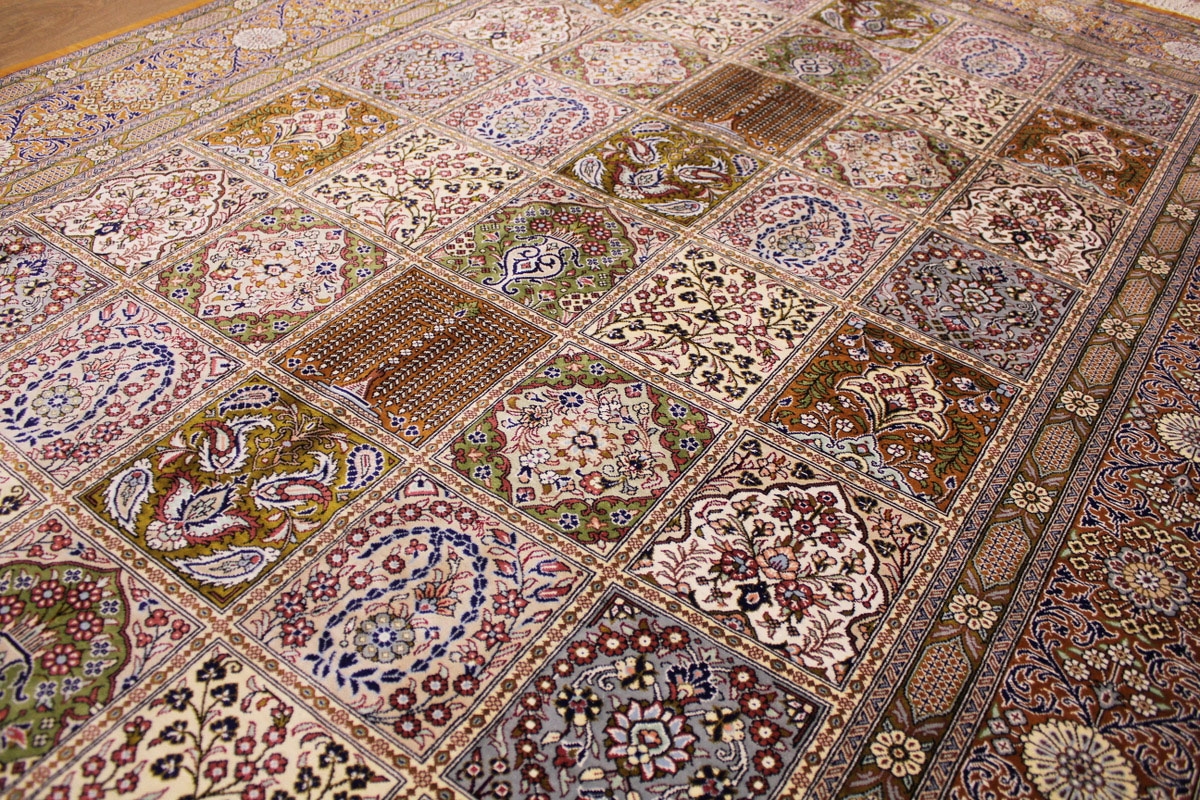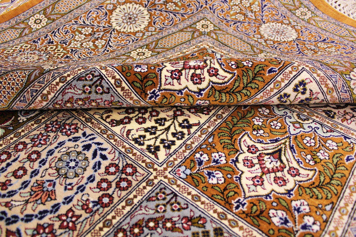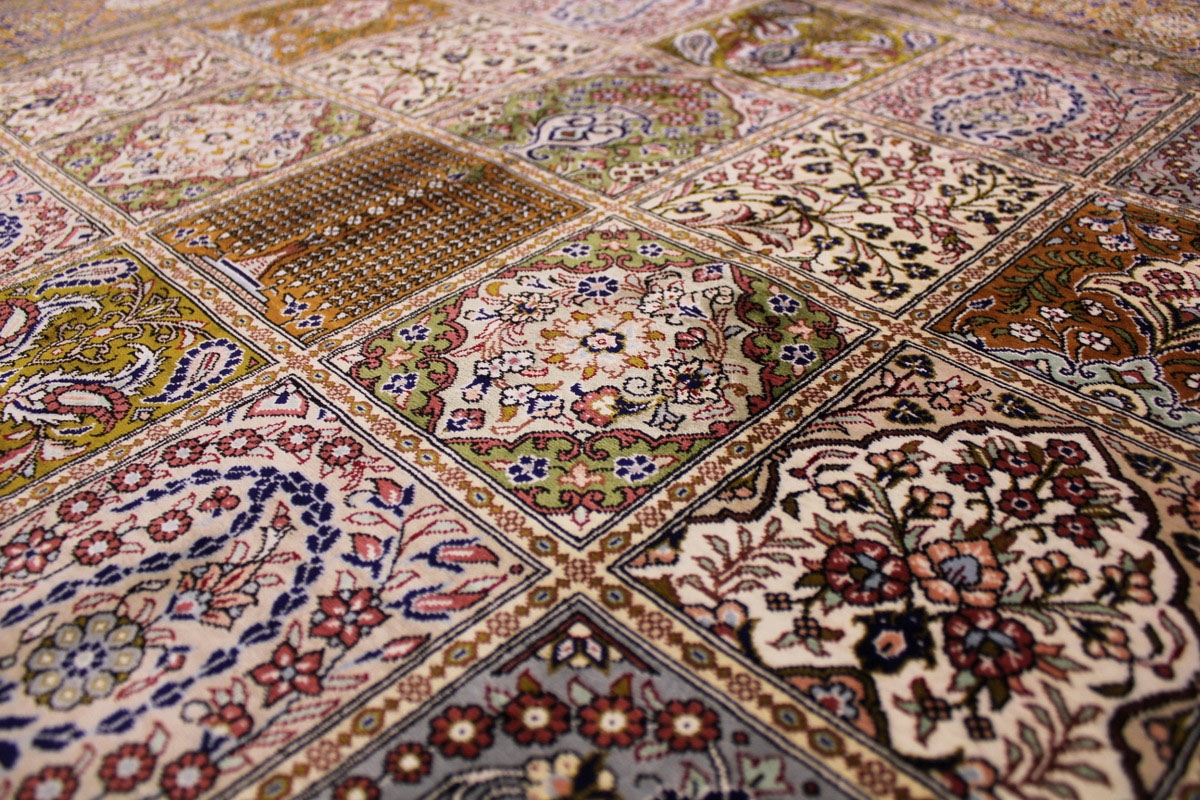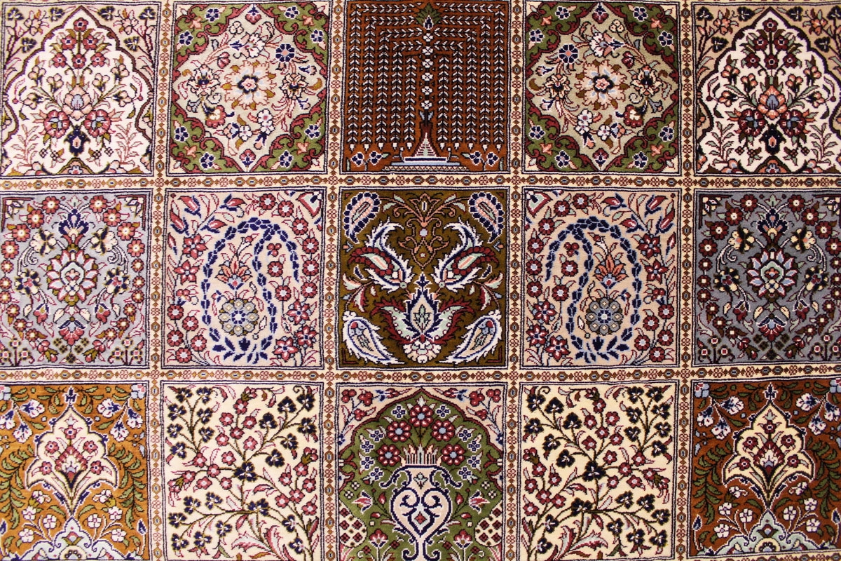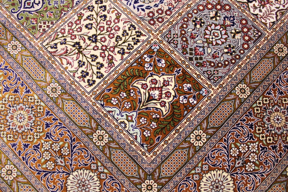 The city of Qom is considered a sacred place among persians, where many make pilgrimages for inner peace with God. Its weaving industry, started only in the 20th century, has developed an unequalled reputation for spectacular pieces of pure hand-woven silk. Qom has no pattern unique to this city, so its carpets are produced in a variety of beautiful and historic designs, demanding prices in the highest range of all Persian weaving.