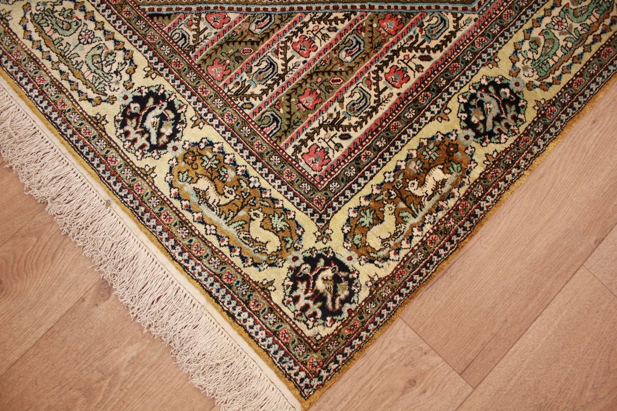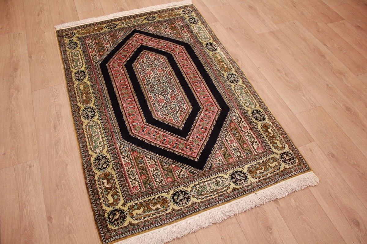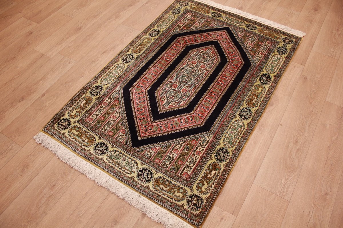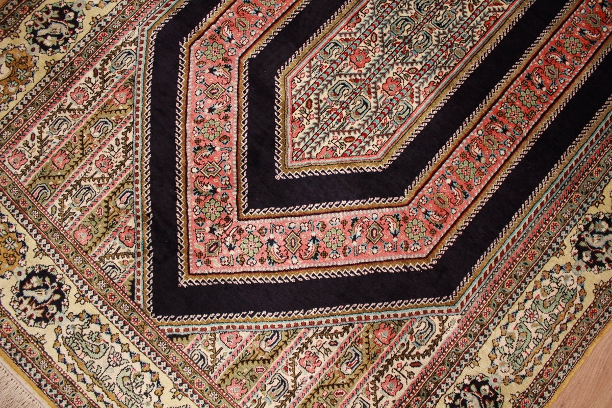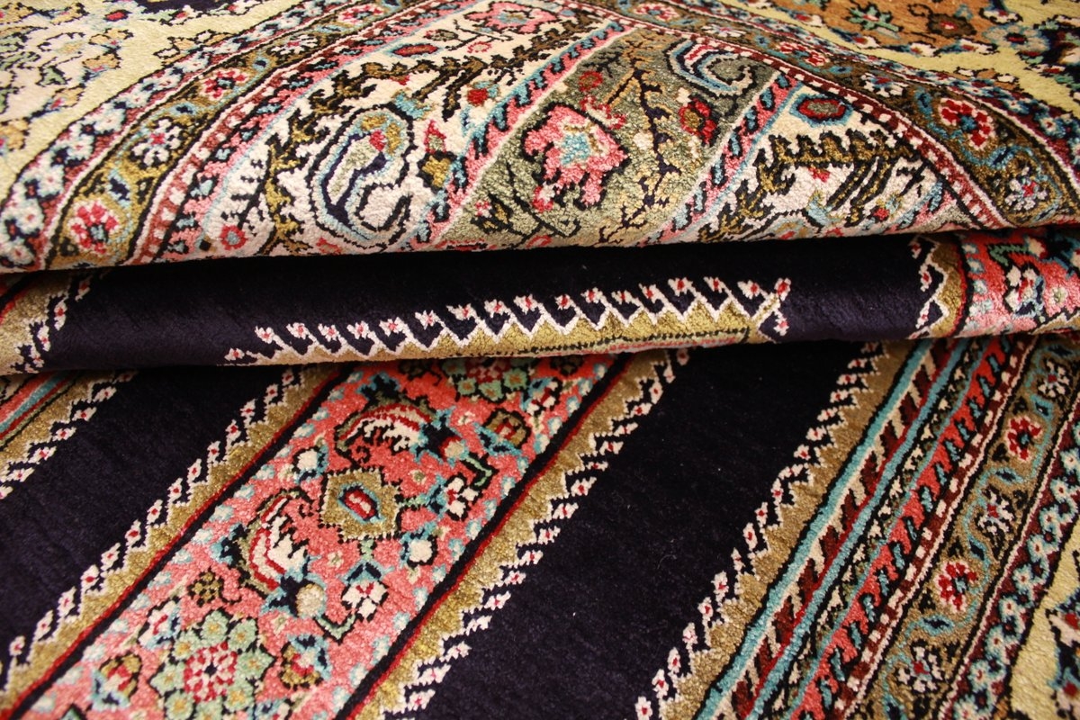 Brilliantly detailed medallions, all-over patterns of the greatest intricacy, and breath-taking pictorials and hunting scenes, attest to the craftsmanship of Persia's finest master-weavers. Some pieces of fine wool are also made there. Although signatures are found on fine rugs made elsewhere, the weavers of Qom take such enormous pride in their product that they almost always weave their signatures into a small part of the carpet´s border. Many shapes and sizes are produced, including squares, rectangles, oval or round, and the sizes may vary from a very small rug to a carpet which would suit the grand salon of a palace. The materials used can be wool, silk, or any combination of the two.
