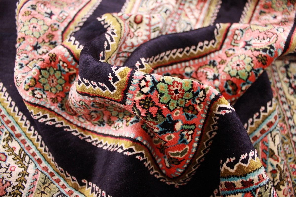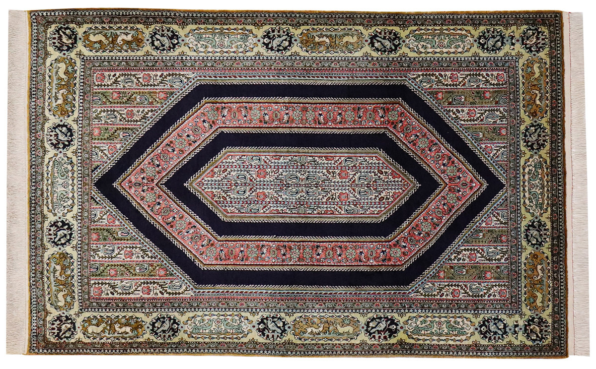 The city of Qom is considered a sacred place among persians, where many make pilgrimages for inner peace with God. Its weaving industry, started only in the 20th century, has developed an unequalled reputation for spectacular pieces of pure hand-woven silk. Qom has no pattern unique to this city, so its carpets are produced in a variety of beautiful and historic designs, demanding prices in the highest range of all Persian weaving.