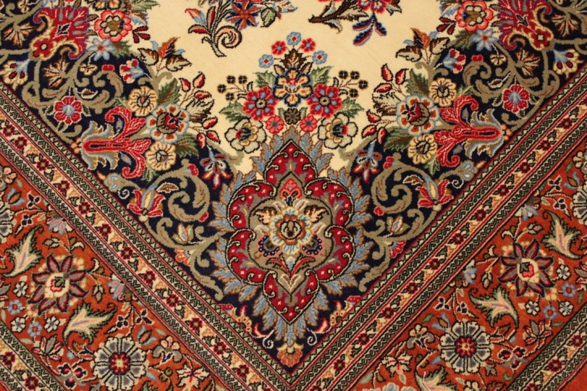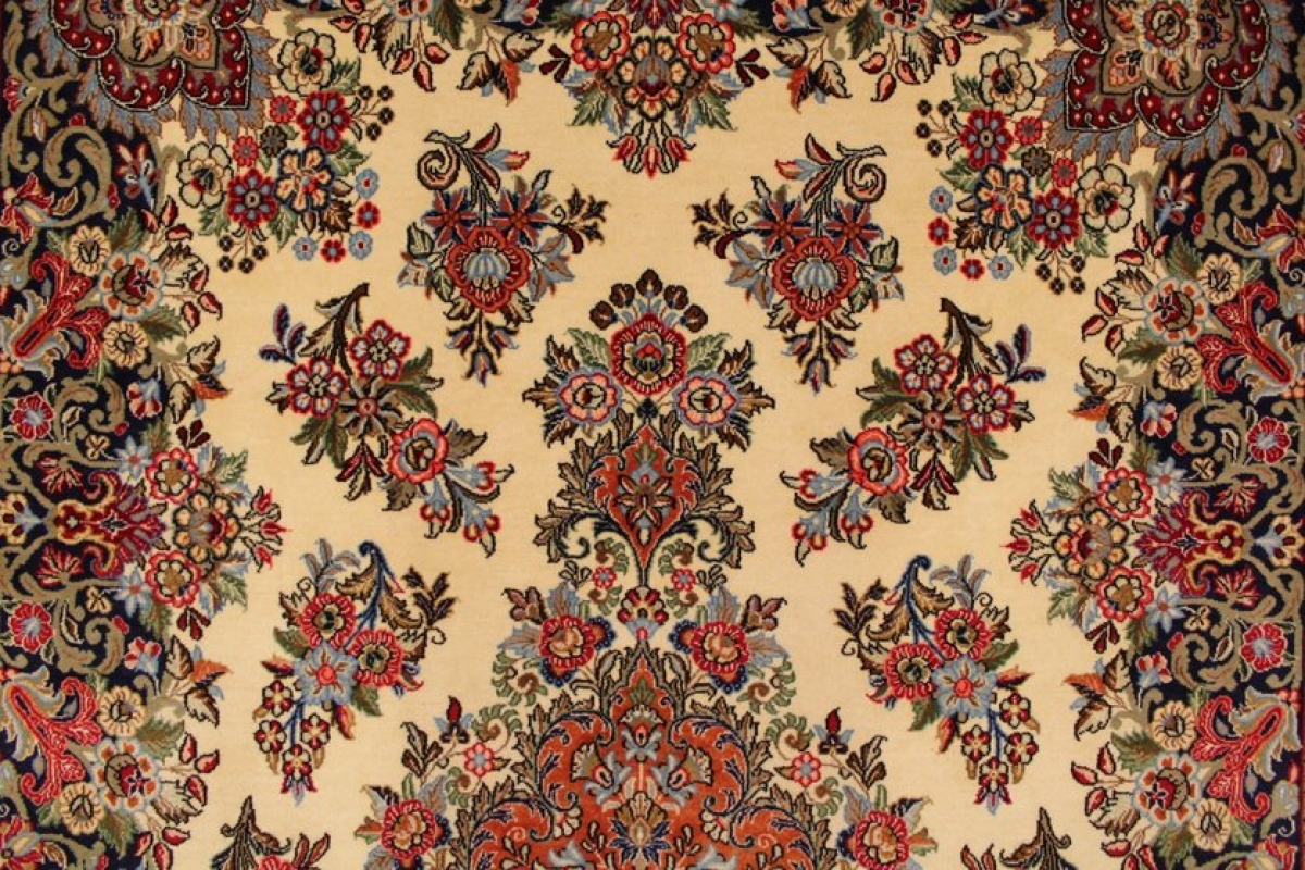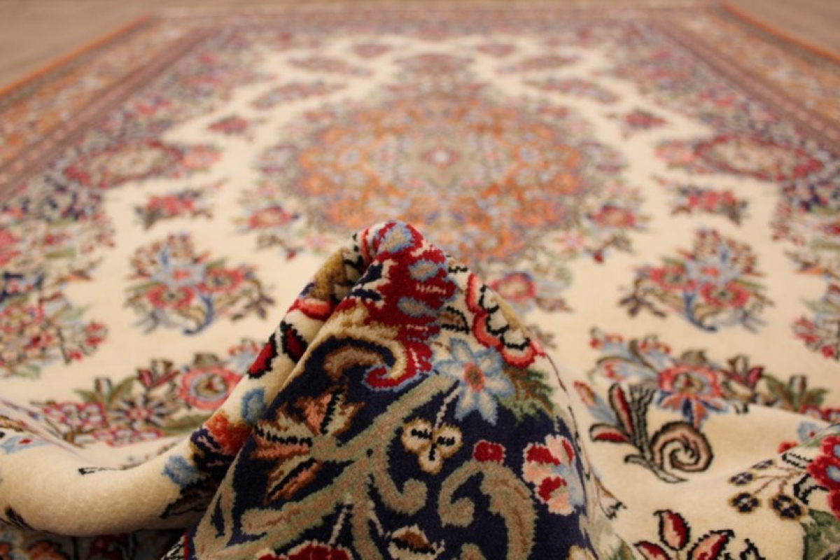 Brilliantly detailed medallions, all-over patterns of the greatest intricacy, and breath-taking pictorials and hunting scenes, attest to the craftsmanship of Persia's finest master-weavers. Some pieces of fine wool are also made there. Although signatures are found on fine rugs made elsewhere, the weavers of Qom take such enormous pride in their product that they almost always weave their signatures into a small part of the carpet´s border. Many shapes and sizes are produced, including squares, rectangles, oval or round, and the sizes may vary from a very small rug to a carpet which would suit the grand salon of a palace. The materials used can be wool, silk, or any combination of the two.