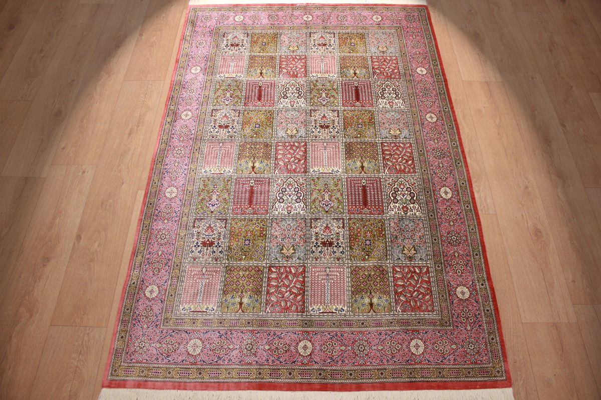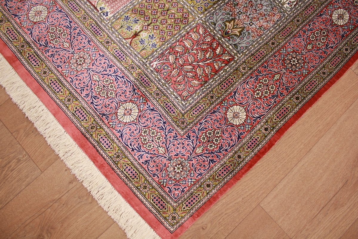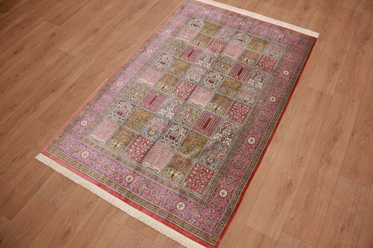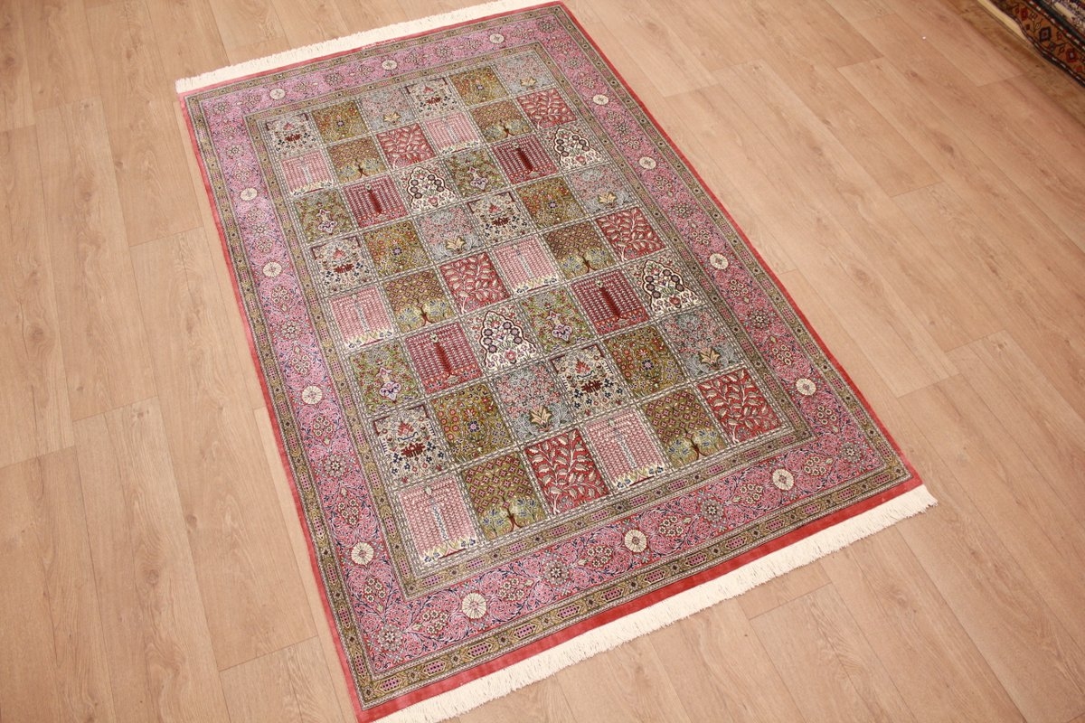 Brilliantly detailed medallions, all-over patterns of the greatest intricacy, and breath-taking pictorials and hunting scenes, attest to the craftsmanship of Persia's finest master-weavers. Some pieces of fine wool are also made there. Although signatures are found on fine rugs made elsewhere, the weavers of Qom take such enormous pride in their product that they almost always weave their signatures into a small part of the carpet´s border. Many shapes and sizes are produced, including squares, rectangles, oval or round, and the sizes may vary from a very small rug to a carpet which would suit the grand salon of a palace. The materials used can be wool, silk, or any combination of the two.