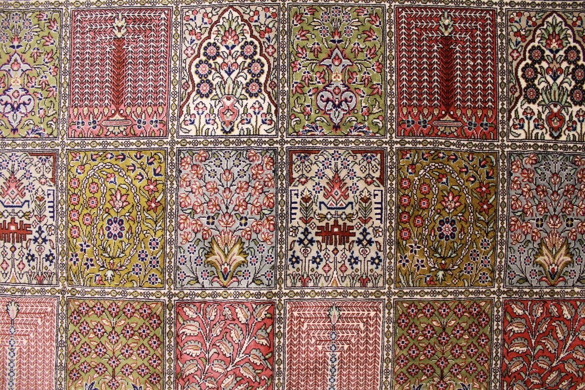 The city of Qom is considered a sacred place among persians, where many make pilgrimages for inner peace with God. Its weaving industry, started only in the 20th century, has developed an unequalled reputation for spectacular pieces of pure hand-woven silk. Qom has no pattern unique to this city, so its carpets are produced in a variety of beautiful and historic designs, demanding prices in the highest range of all Persian weaving.