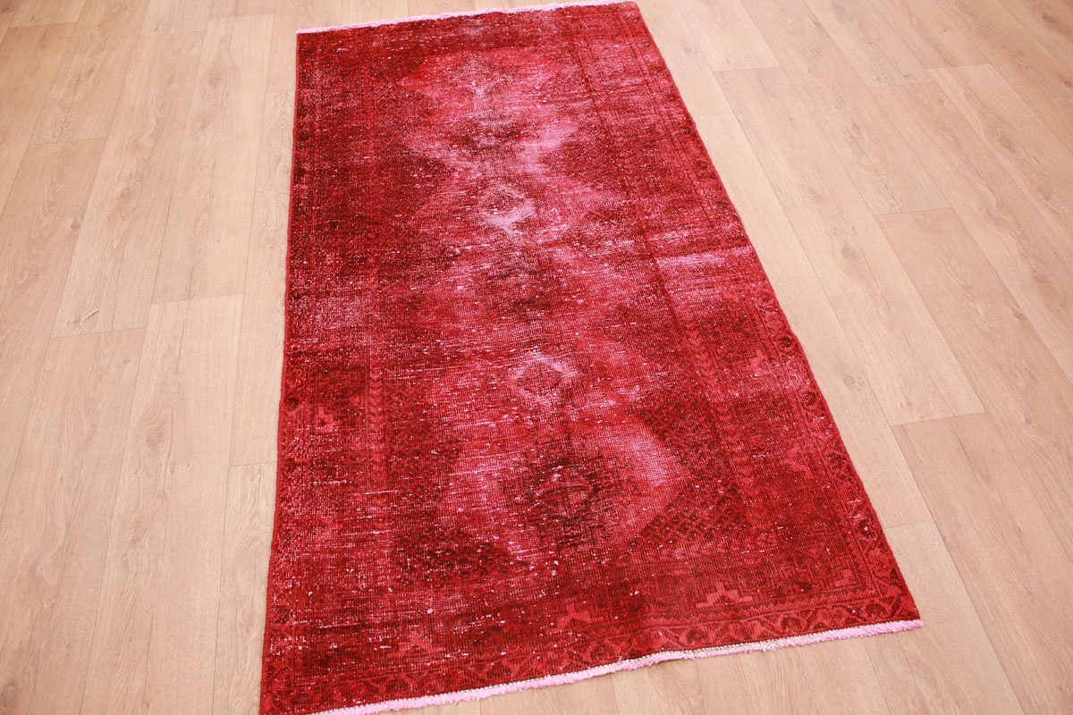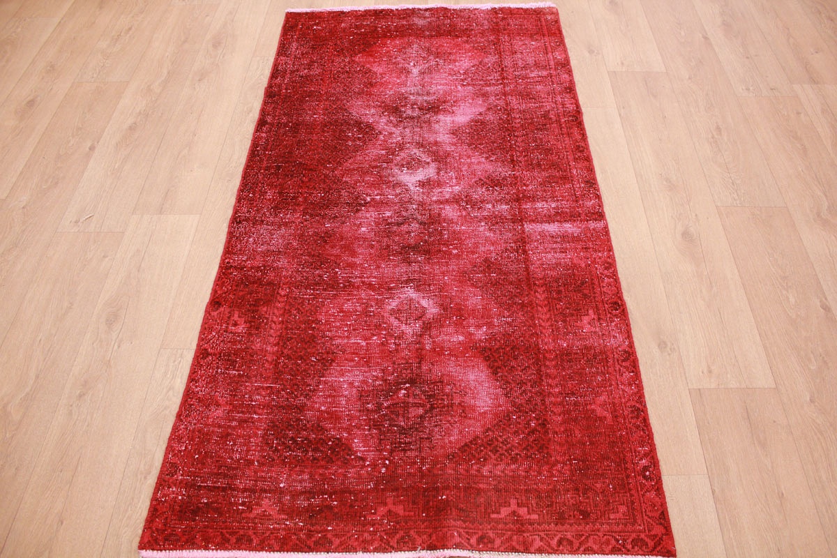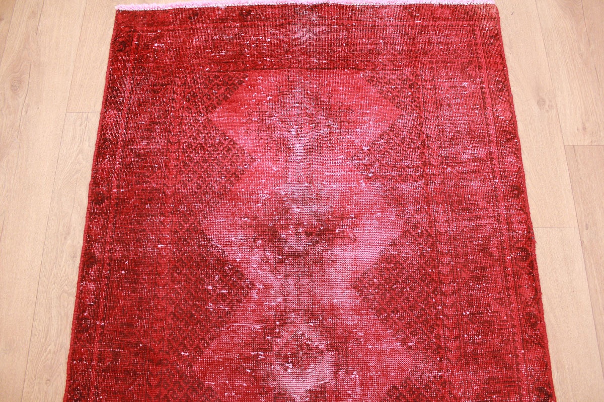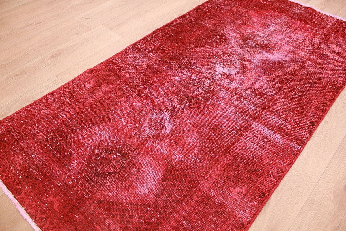 Vintage carpet modern used look overdyed 200x104 cm Red