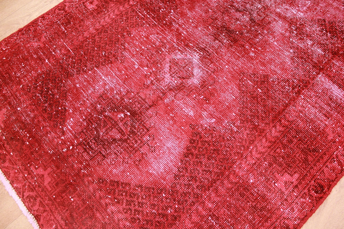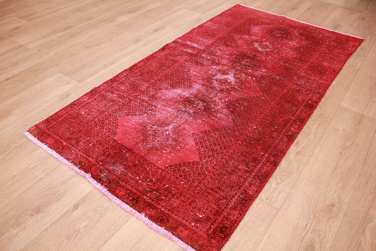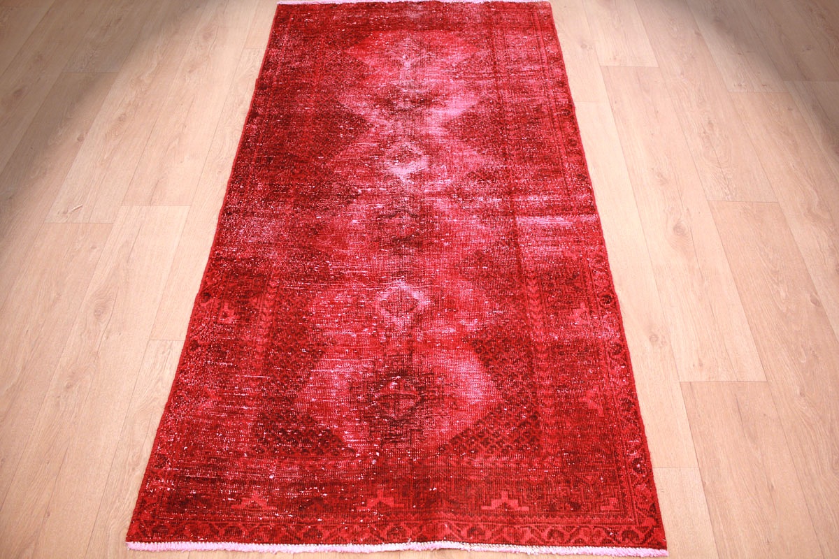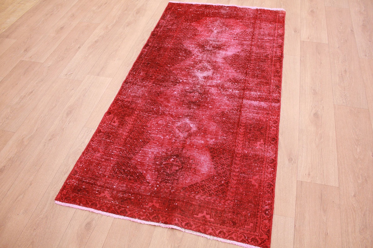 Vintage carpet modern used look overdyed 200x104 cm Red